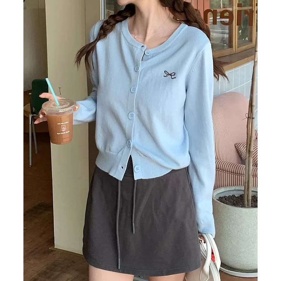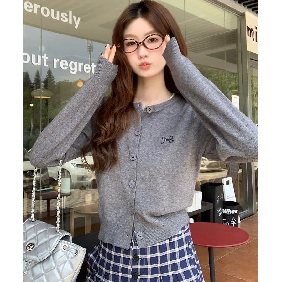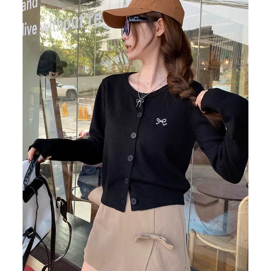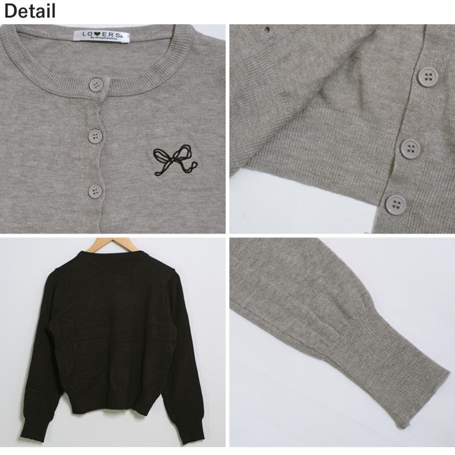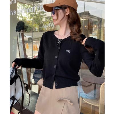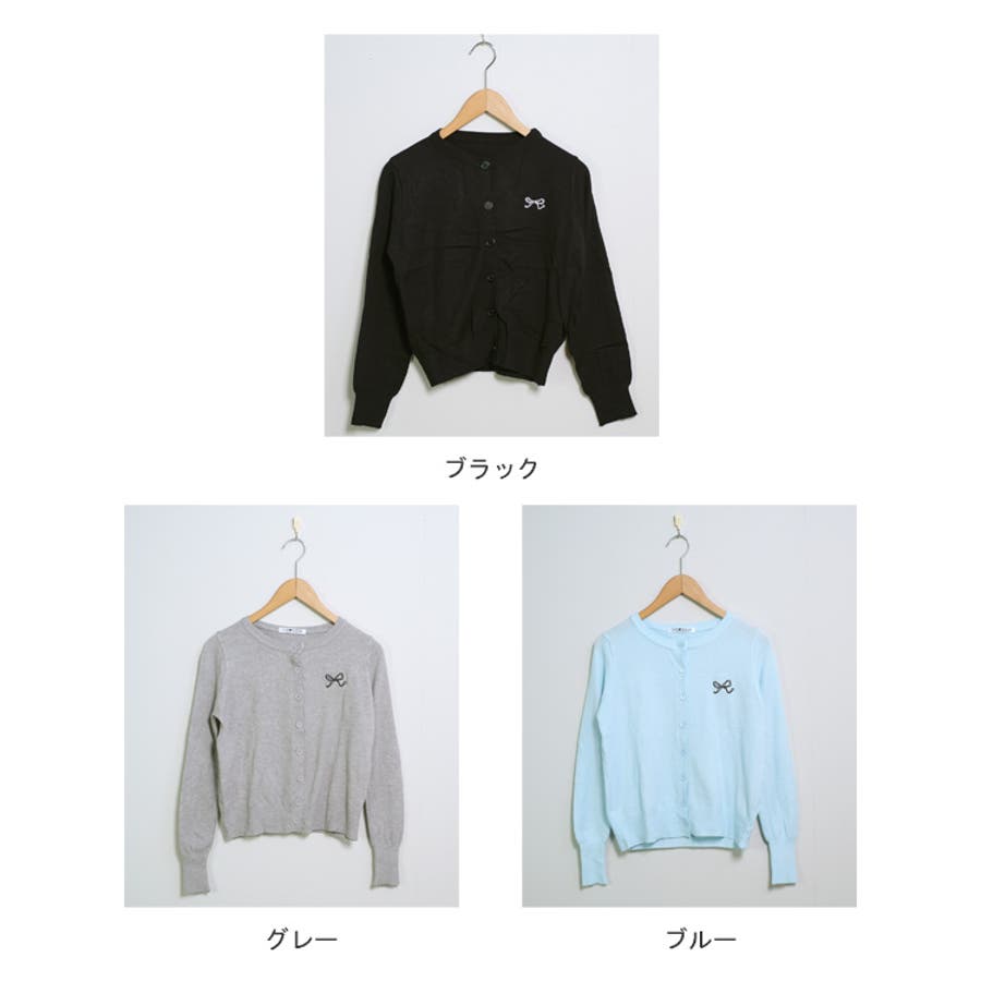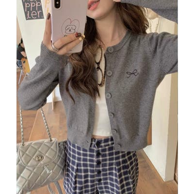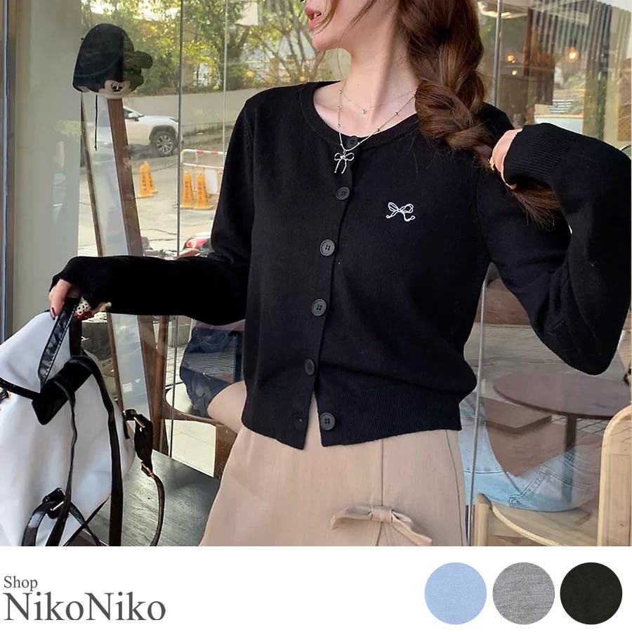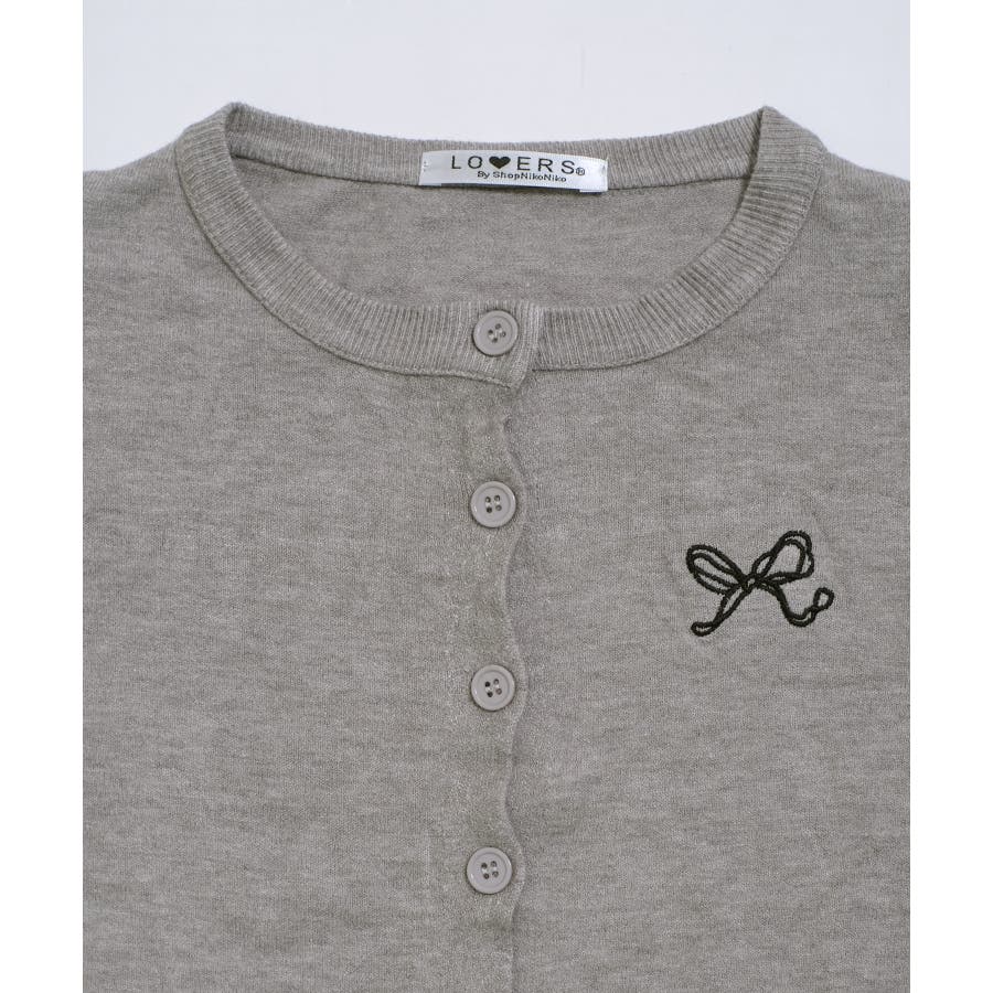 冬新作 ワンポイントリボン刺繍 ニットカーディガン