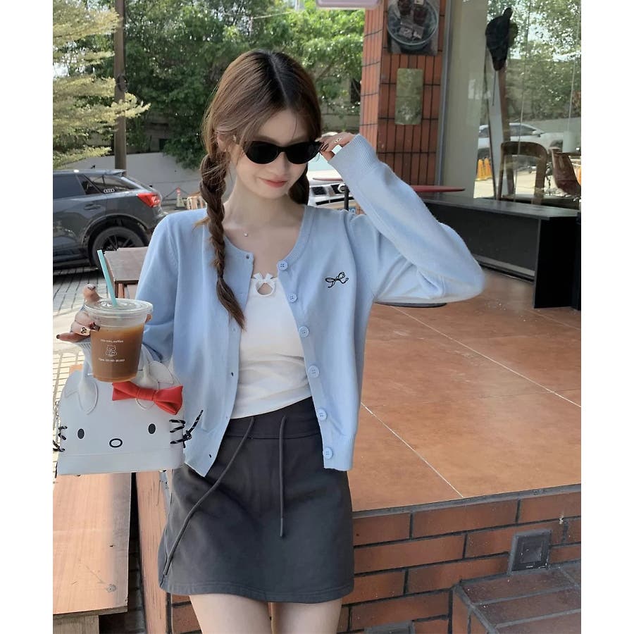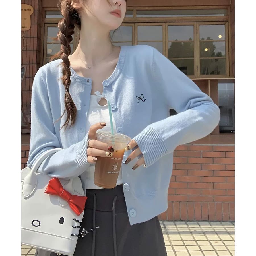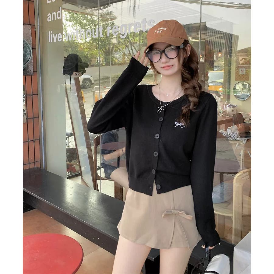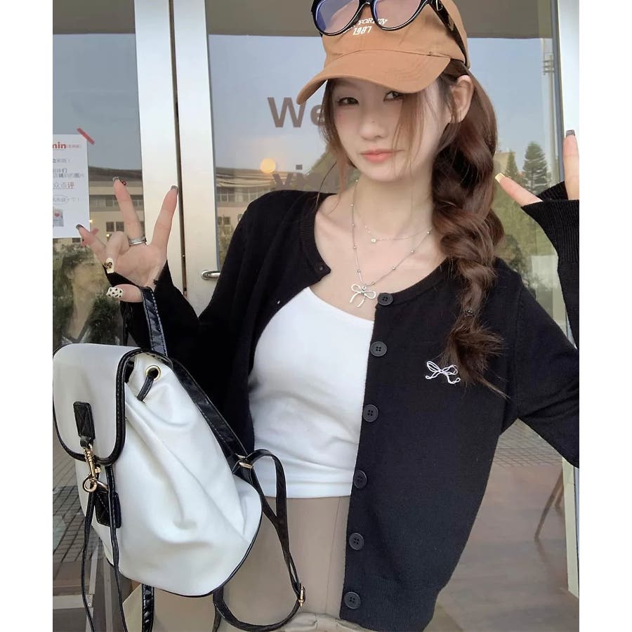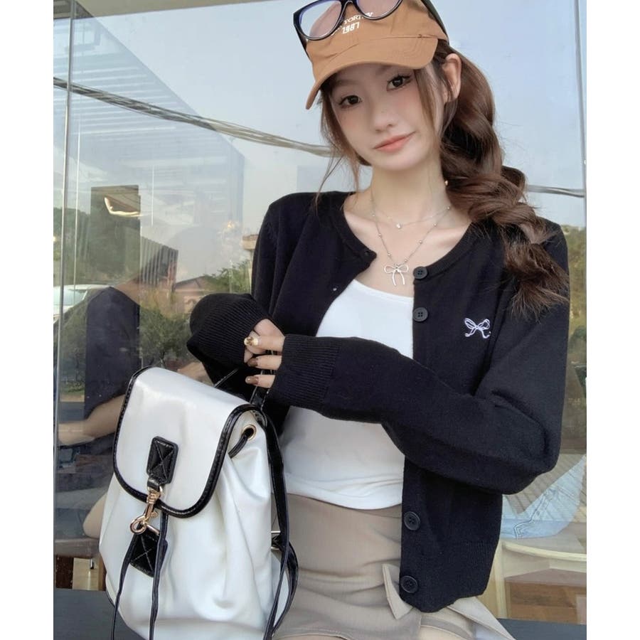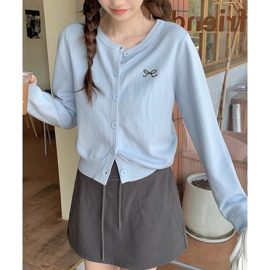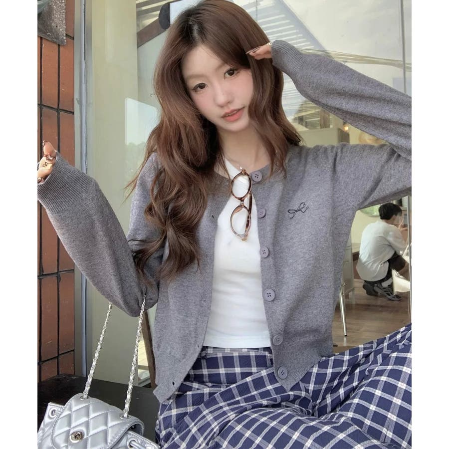 冬新作 ワンポイントリボン刺繍 ニットカーディガン