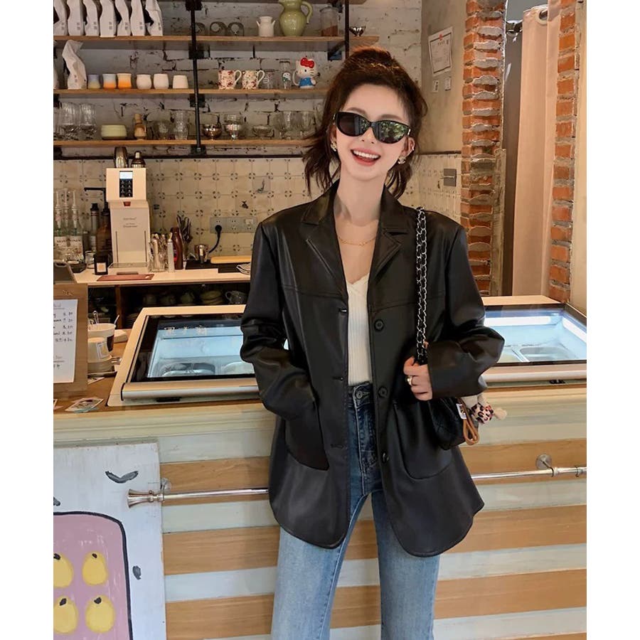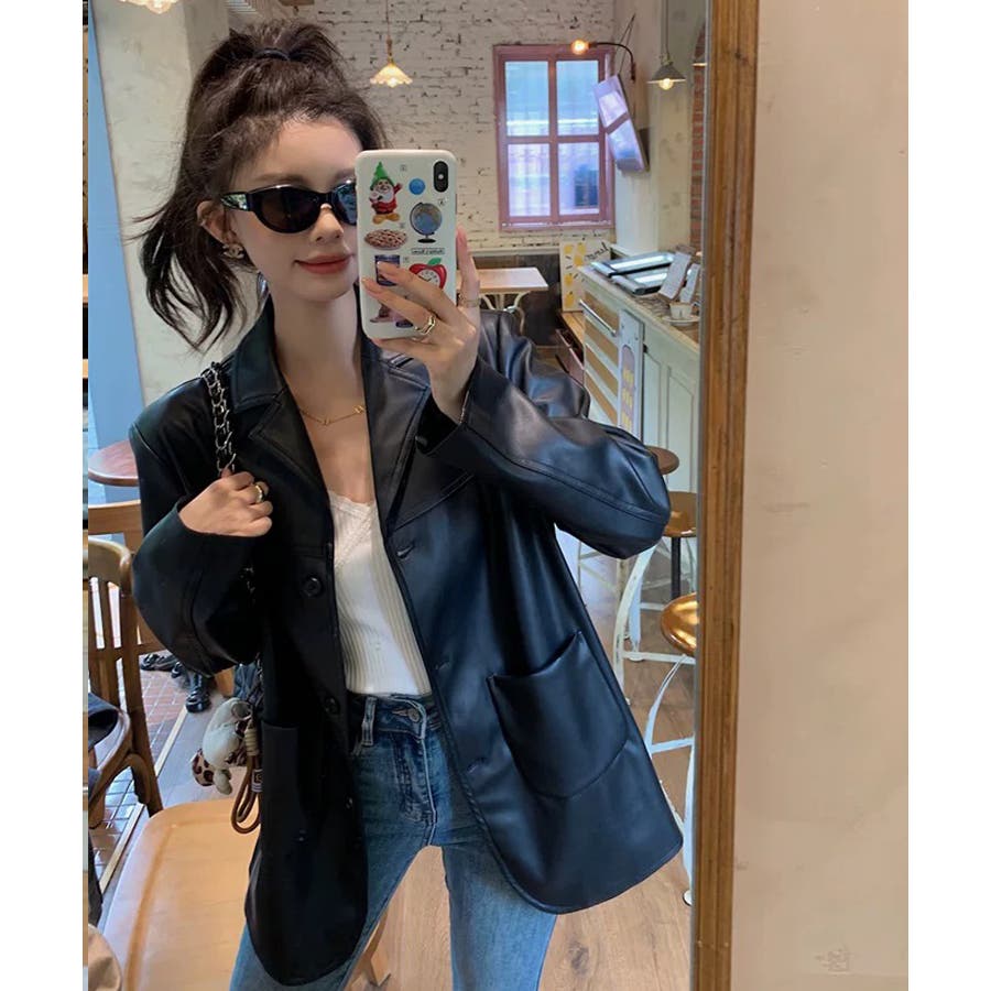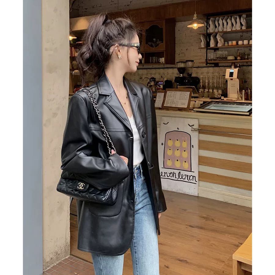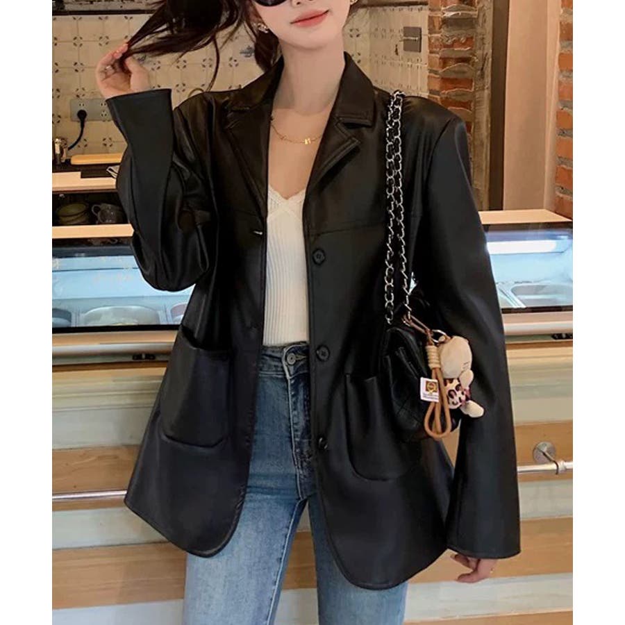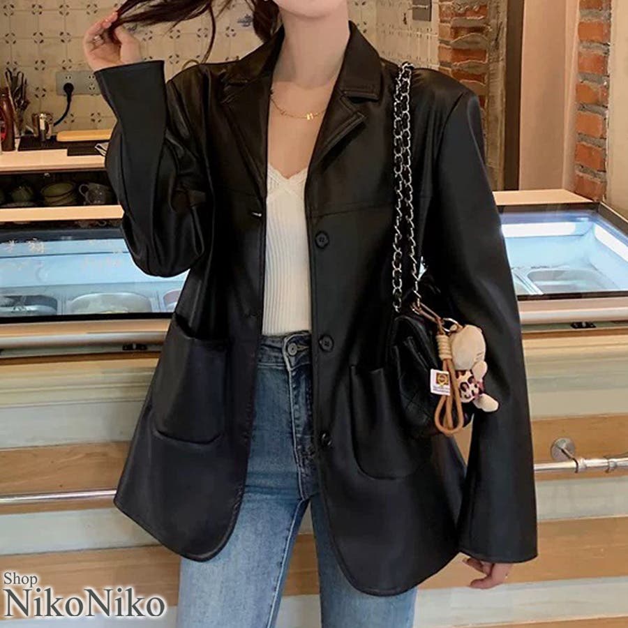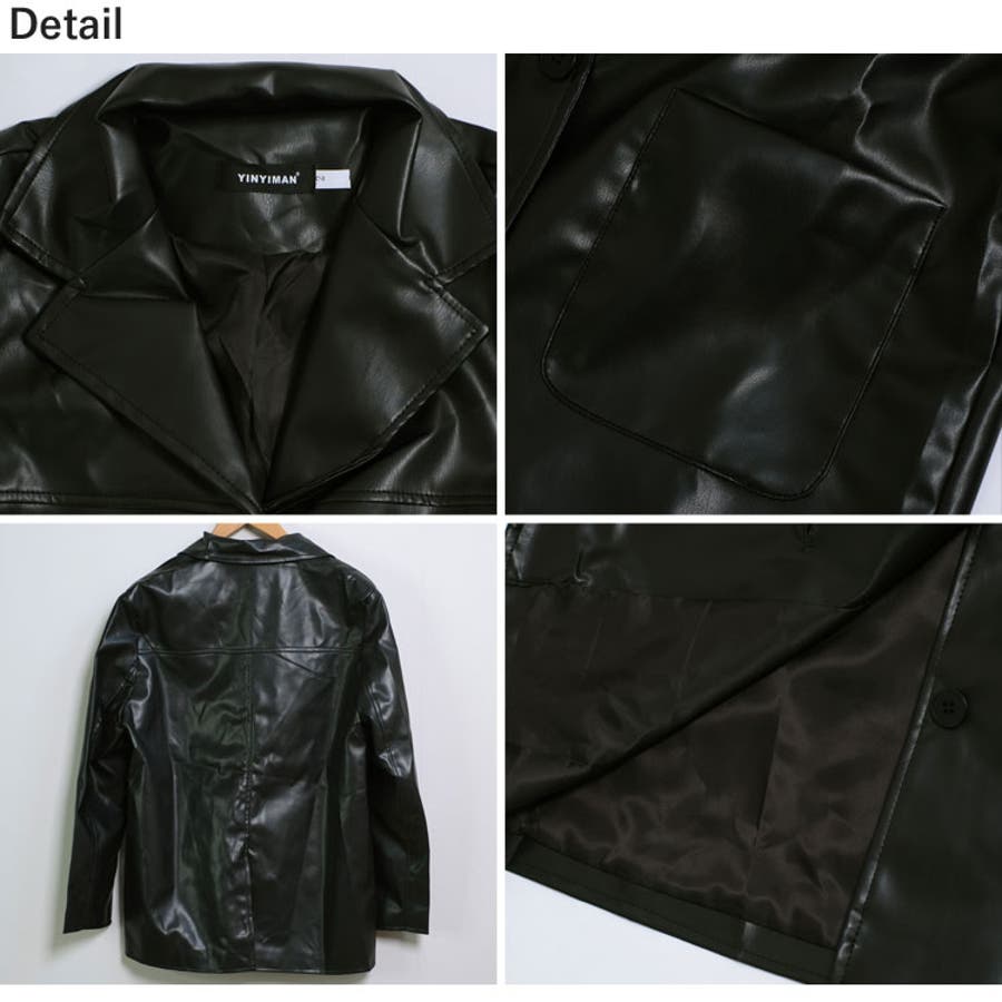 冬新作 PUレザー テーラードジャケット海外コーデ