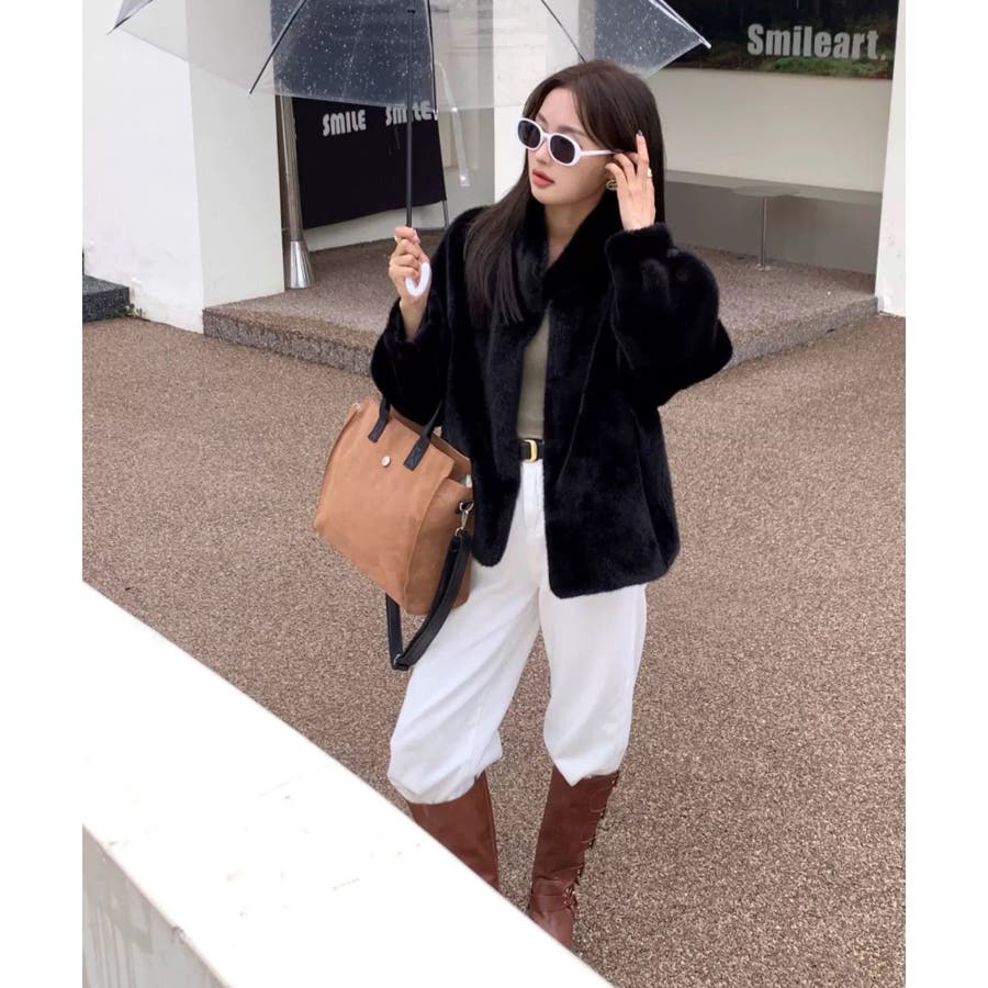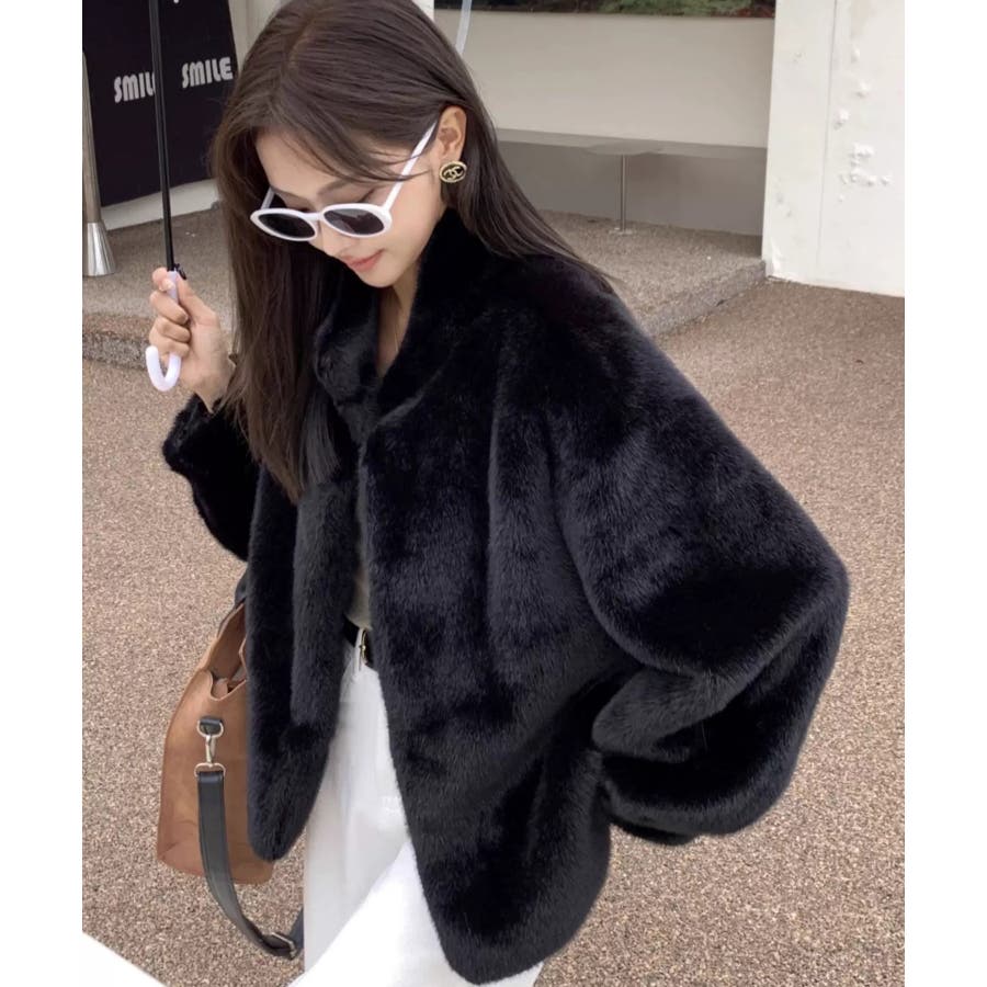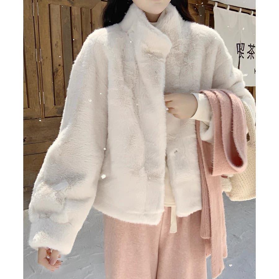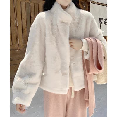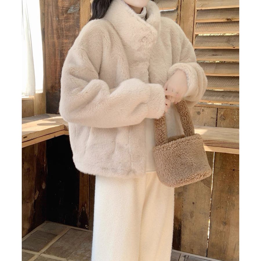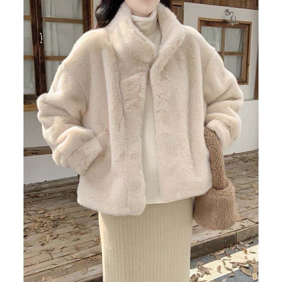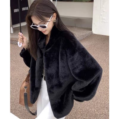 冬新作 スタンドカラー フェイクファーブルゾン海外コーデ