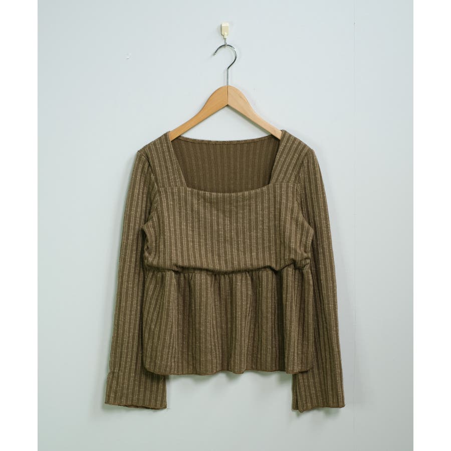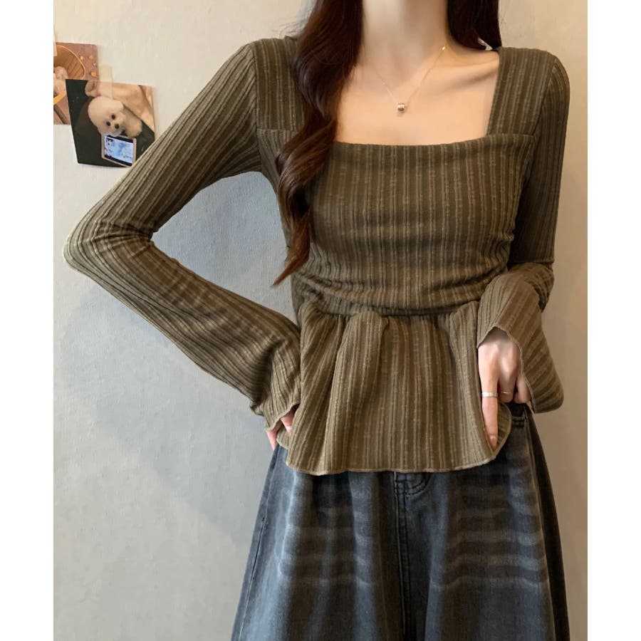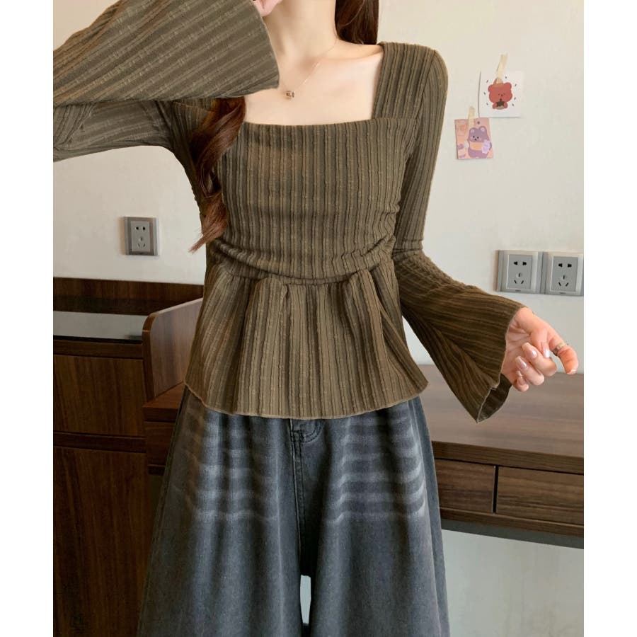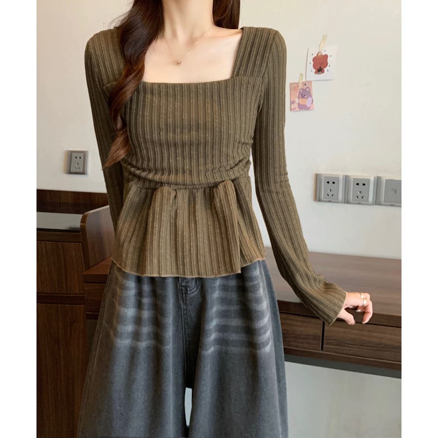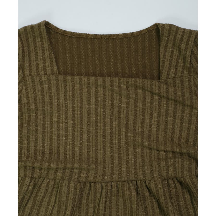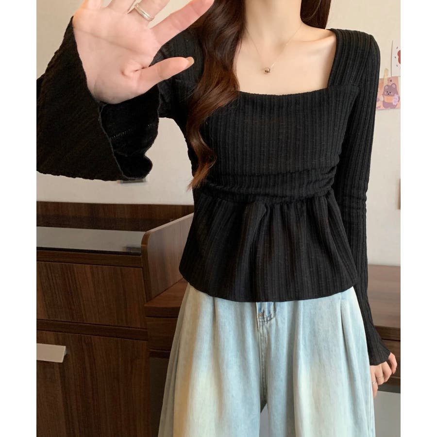 深めのスクエアネックがデコルテを綺麗に