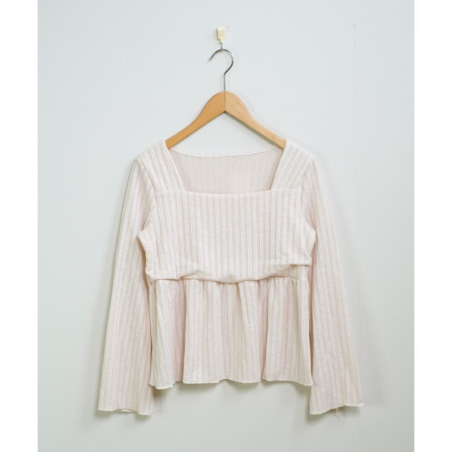 裾にかけて広がるペプラムトップスで