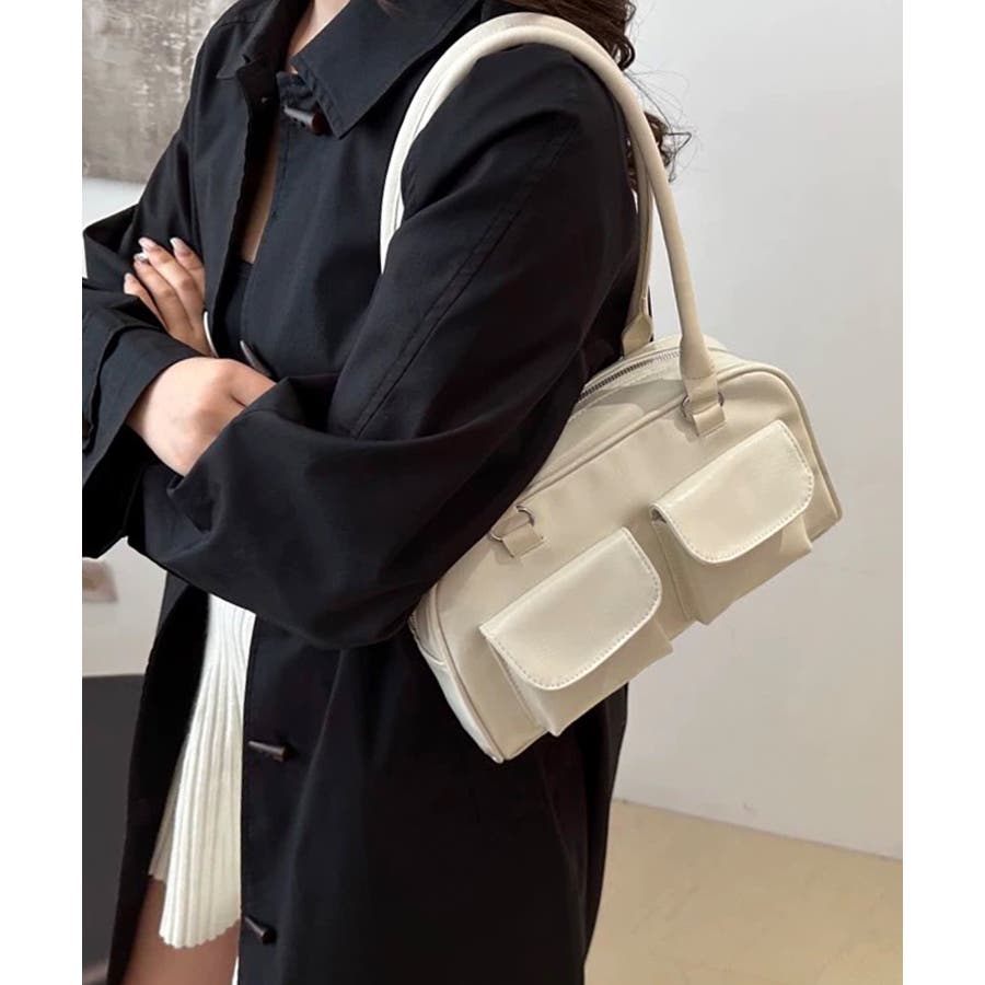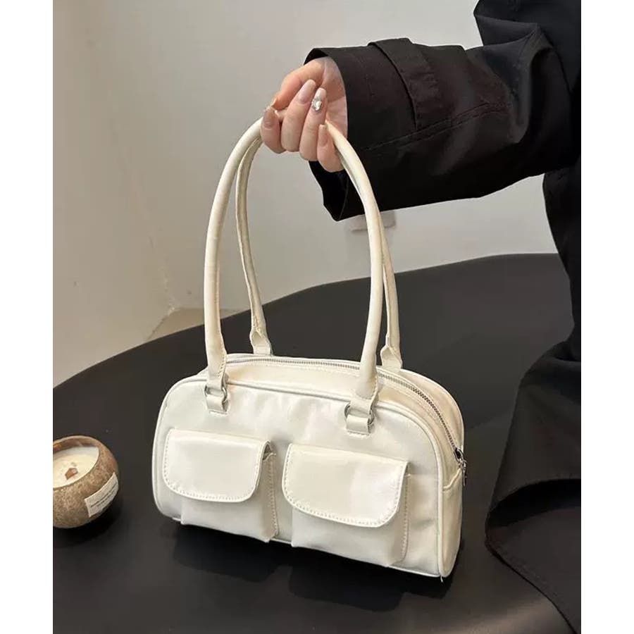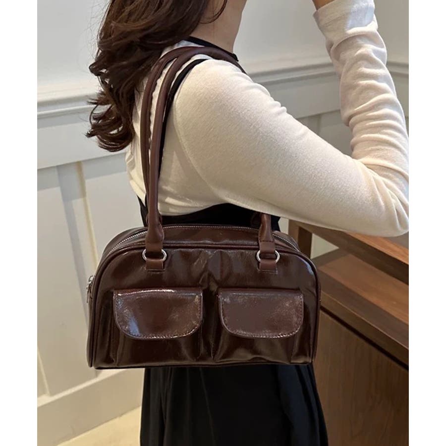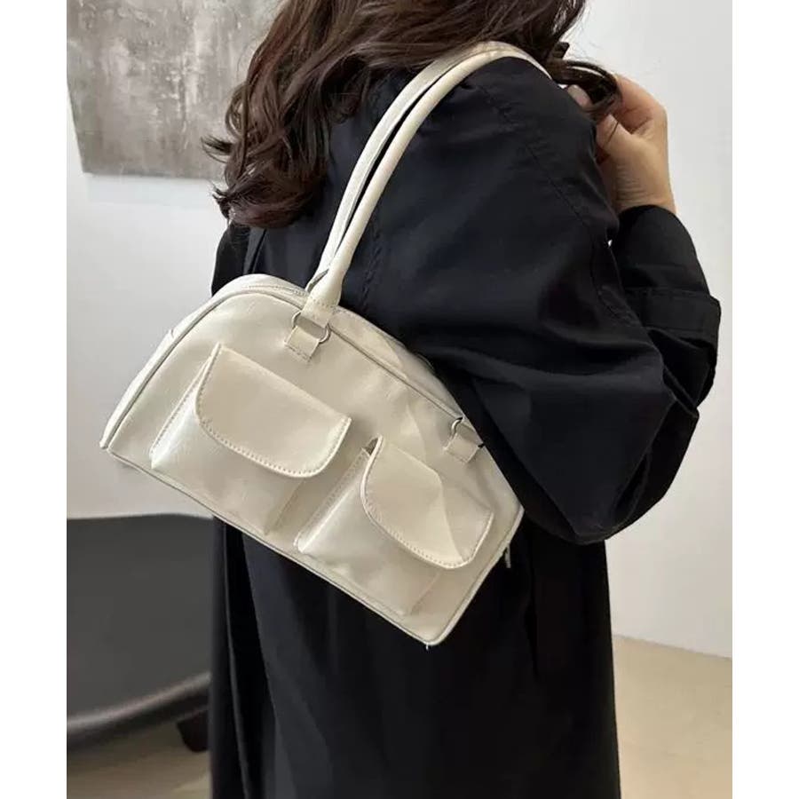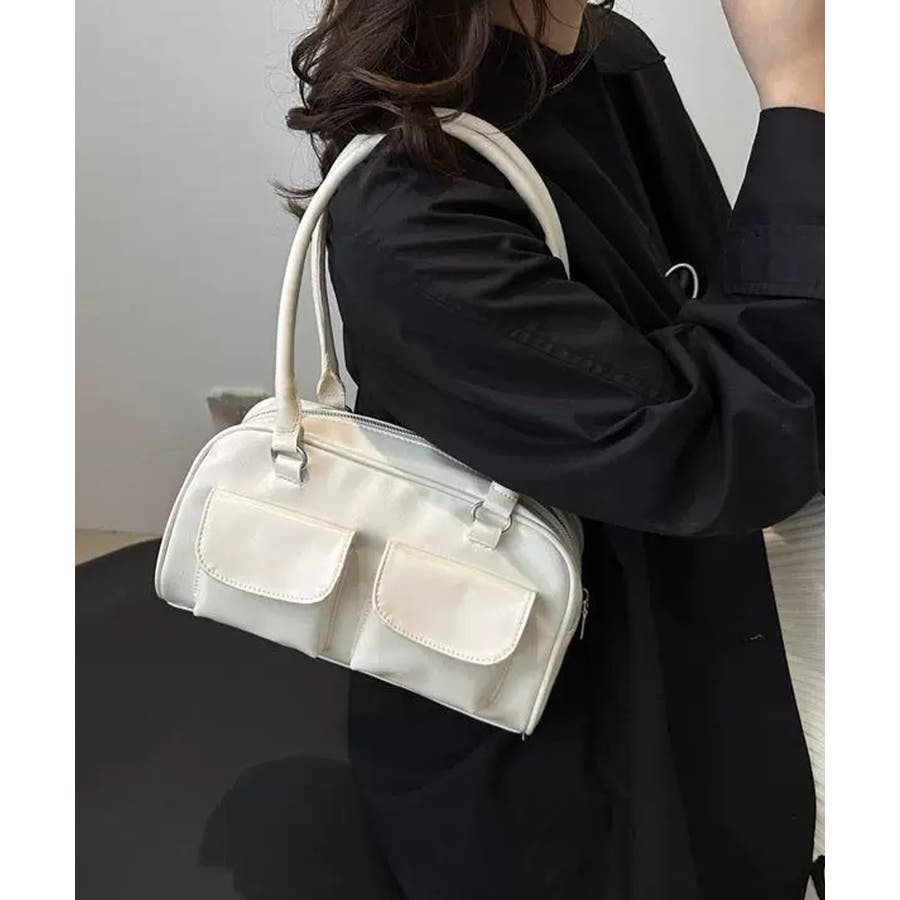 冬新作 フロントダブルポケット ボストンバッグ韓国バッグ