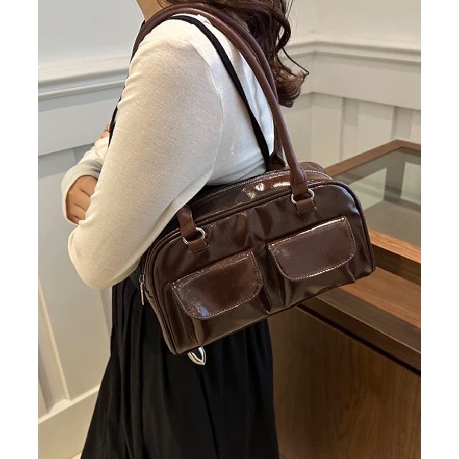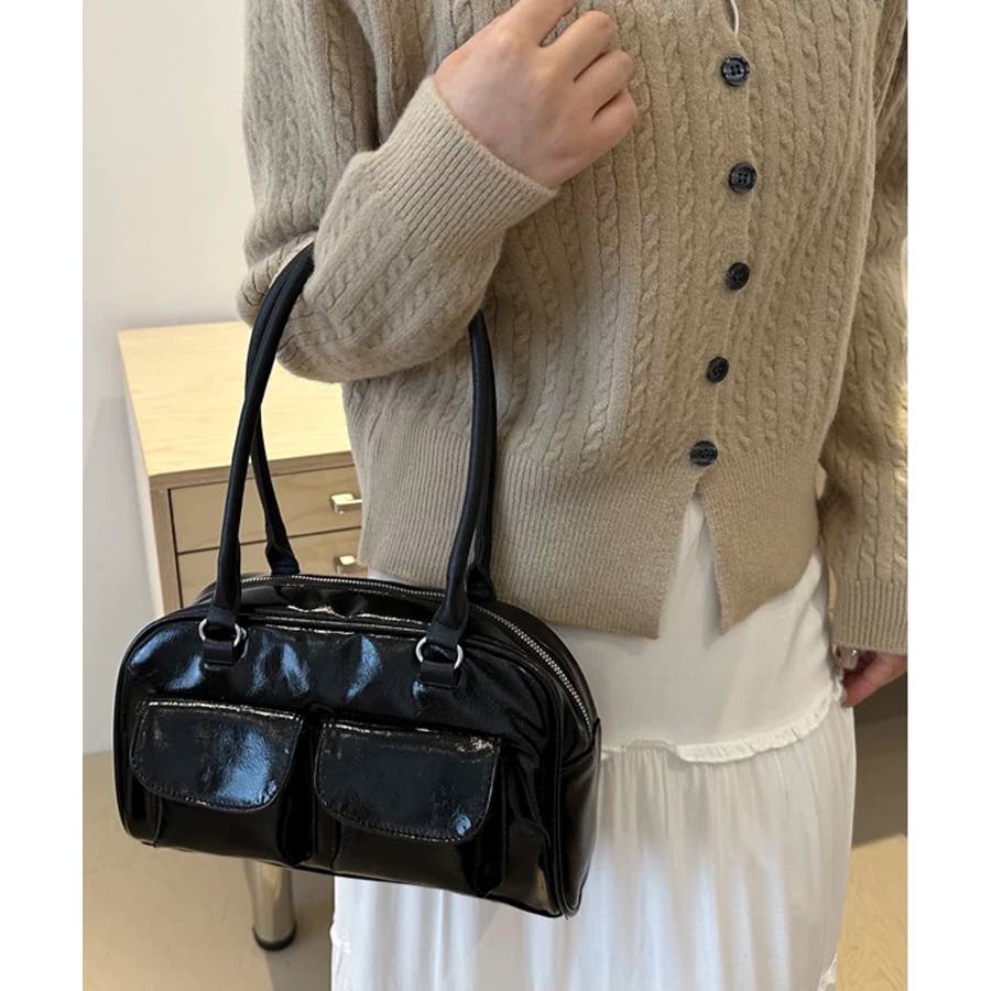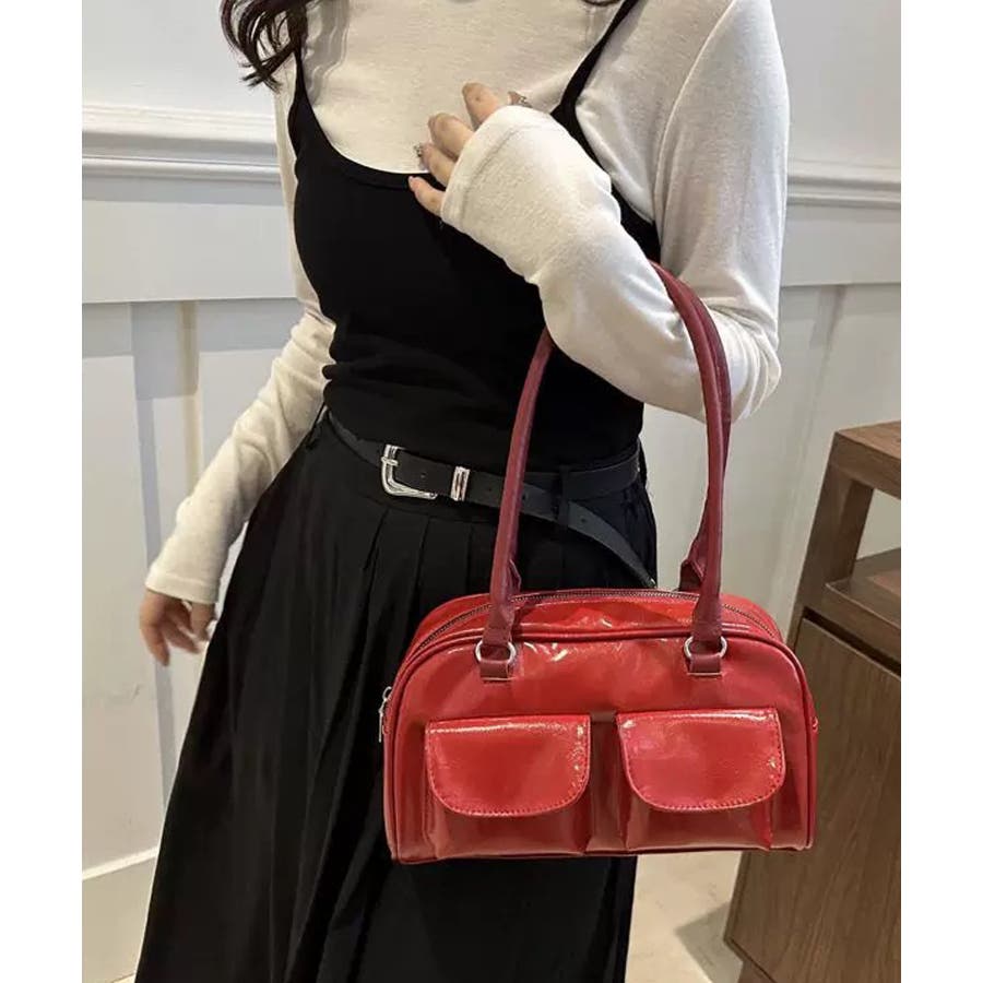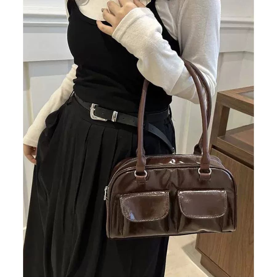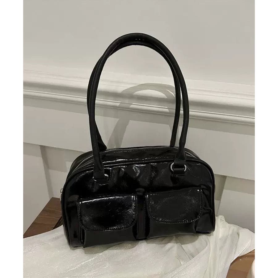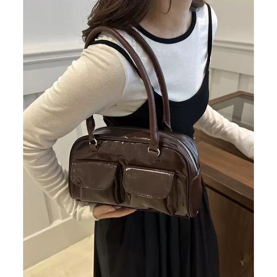 冬新作 フロントダブルポケット ボストンバッグ韓国バッグ