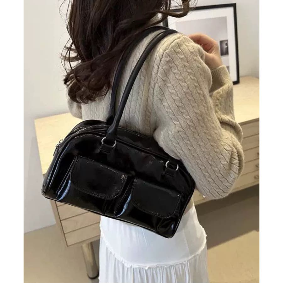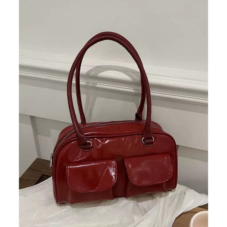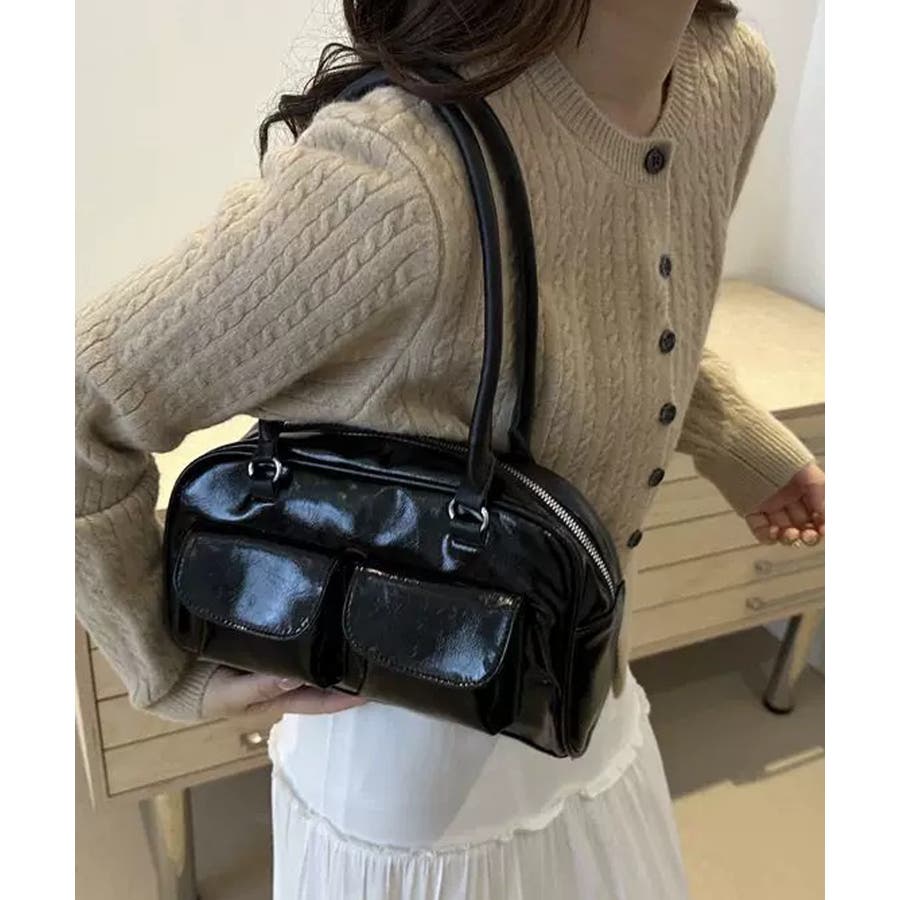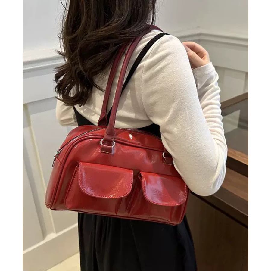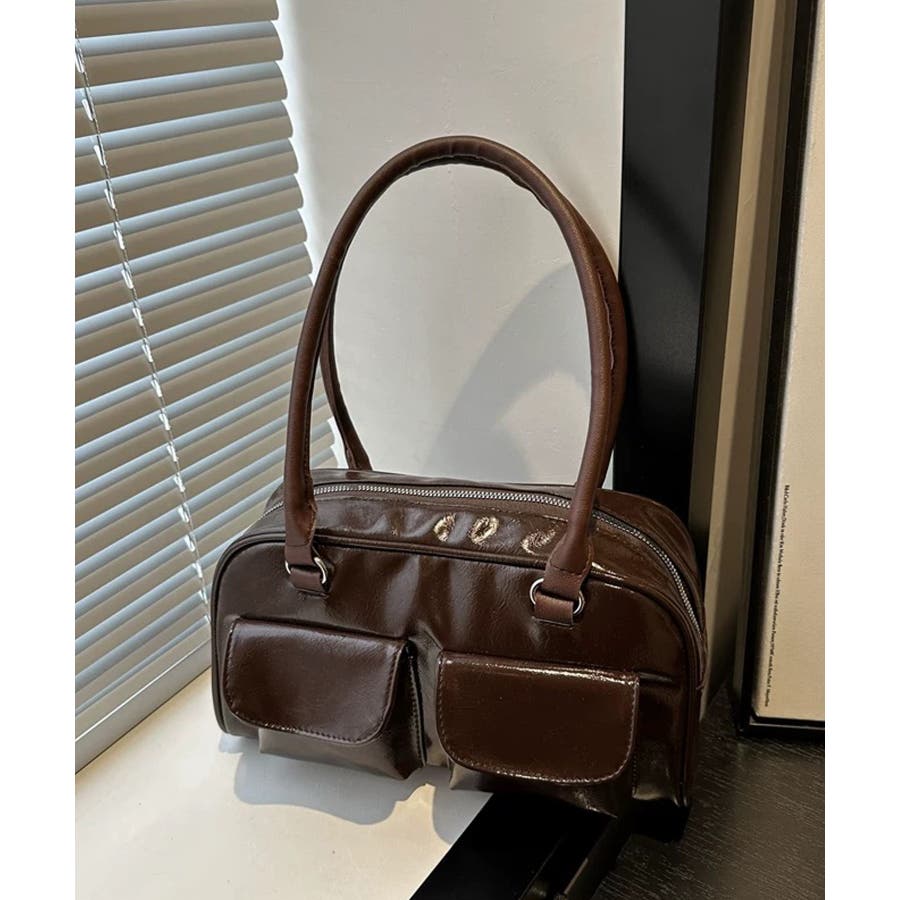 冬新作 フロントダブルポケット ボストンバッグ韓国バッグ
