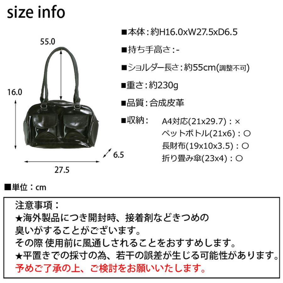 縦:約16cm 幅:約27.5cm マチ:約6.5cm ショルダー長さ:約55cm(調整不可)