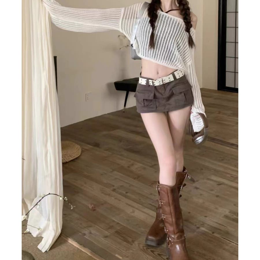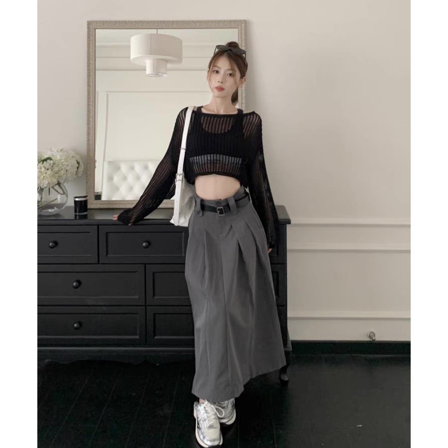 クロップド丈なのでハイウエストのボトムスと合わせると