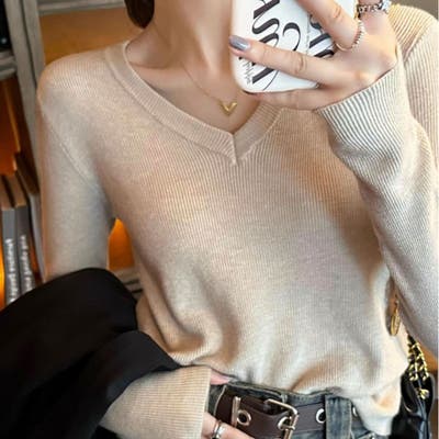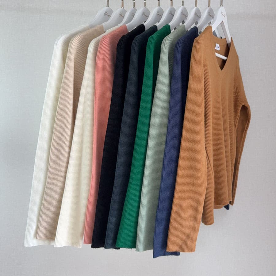 着ぶくれしない重ね着にお勧め薄手のvネックカットソーが登場。