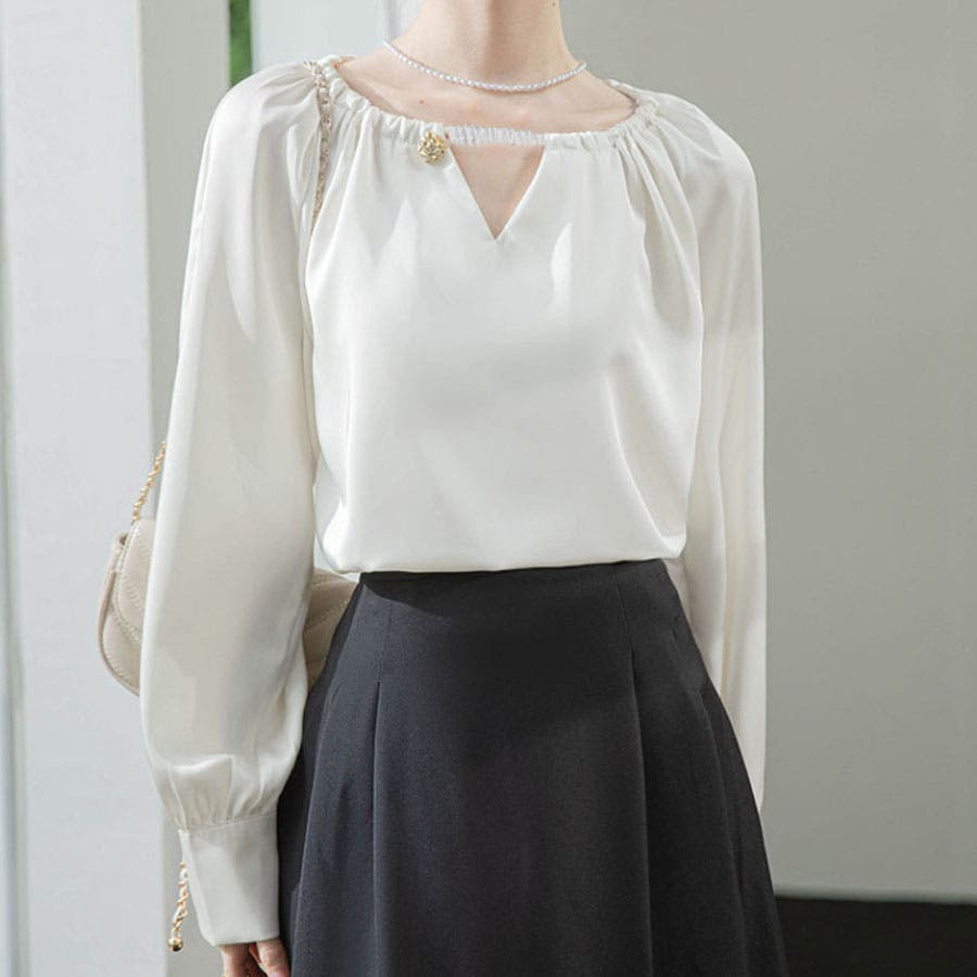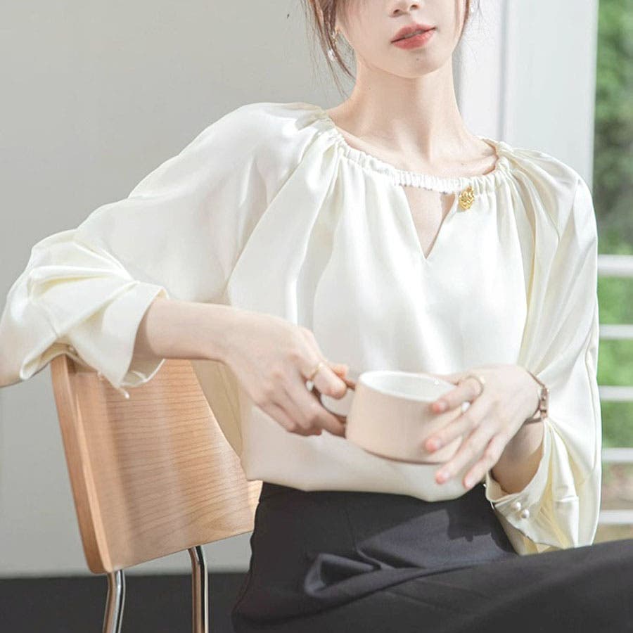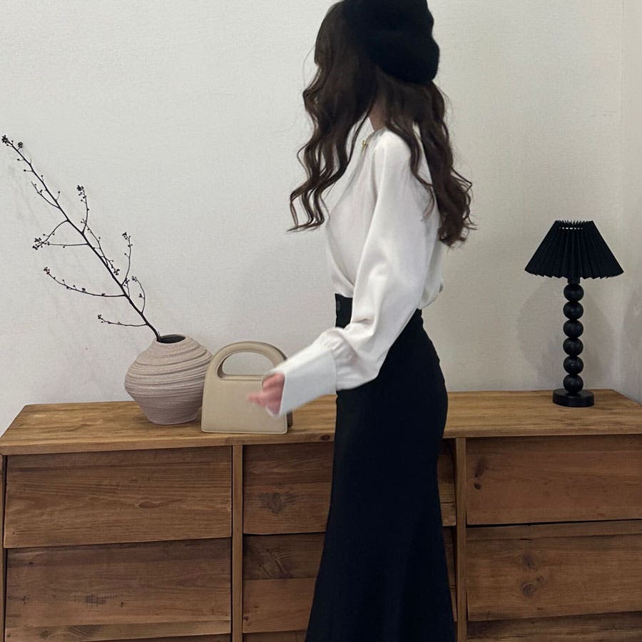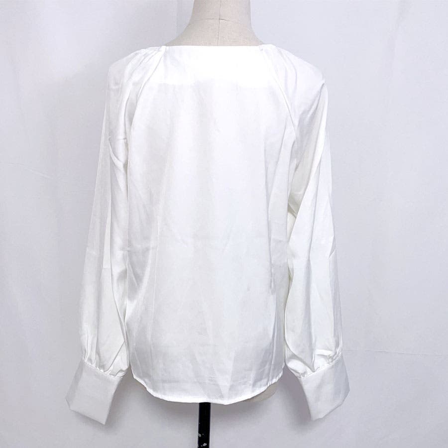 女性らしい柔らかい印象のVネックがデコルテをキレイに魅せてくれます。