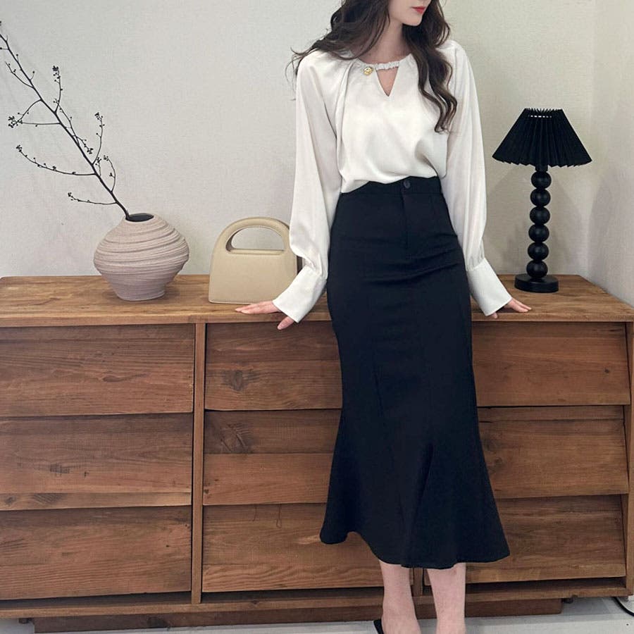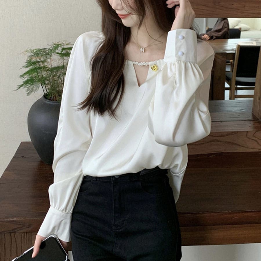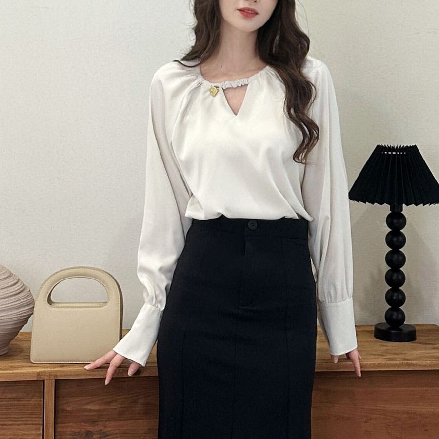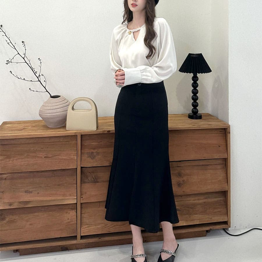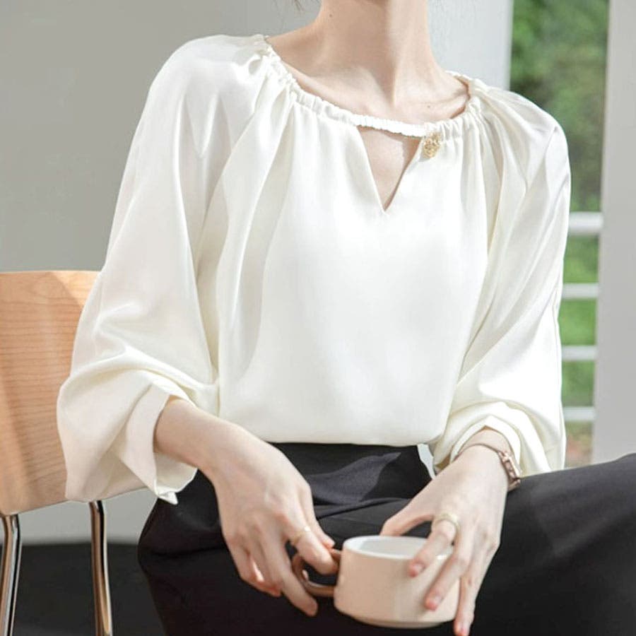 女性らしい柔らかい印象のVネックがデコルテをキレイに魅せてくれます。