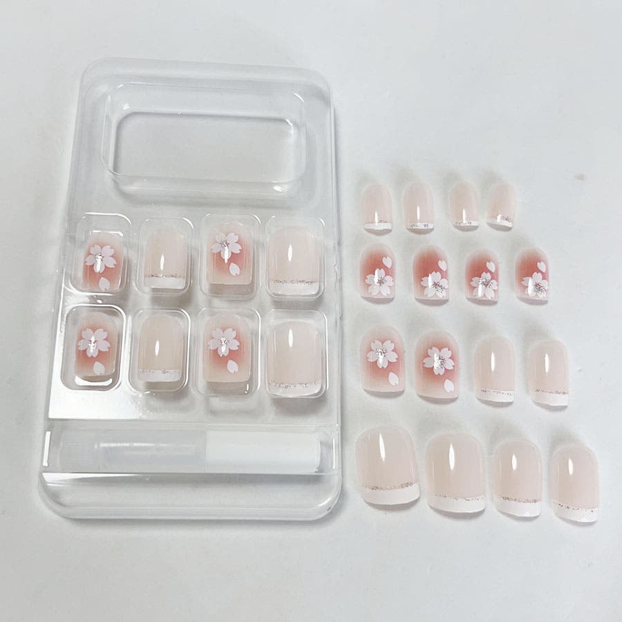ネイル用の接着剤による装着の場合、接着剤を爪の表面に塗り、ネイルチップをその上から張り付けます。