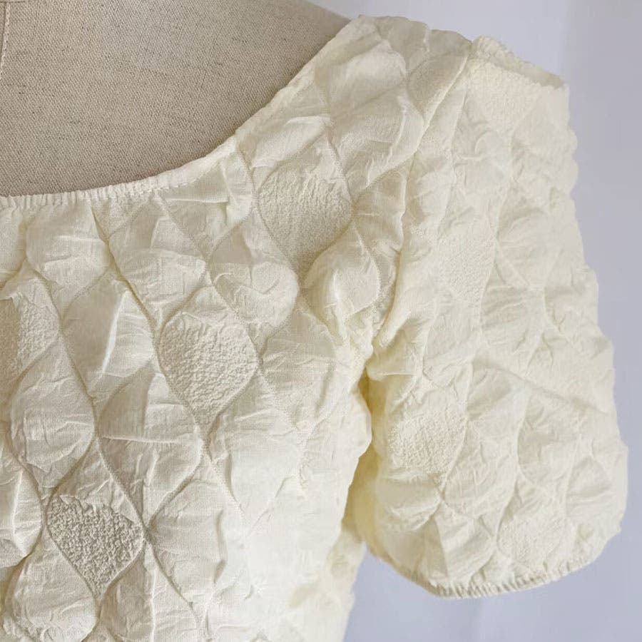 スクエアネックで、デコルテラインもきれいに女性らしい印象を与えてくれる。