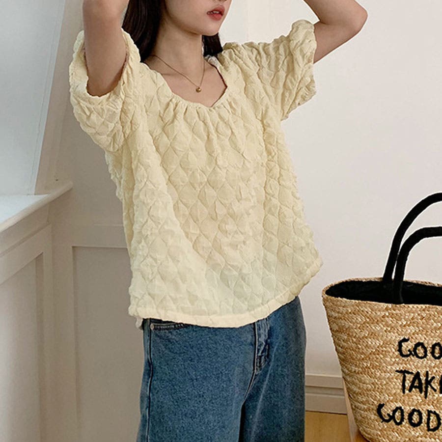 夏新作パフスリーブ ブラウストップス 半袖