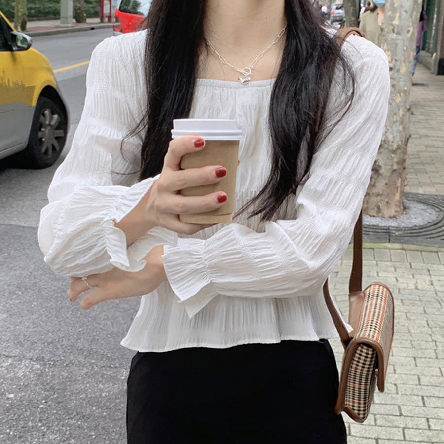 袖と裾のフリルが甘くなり過ぎない大人可愛い。