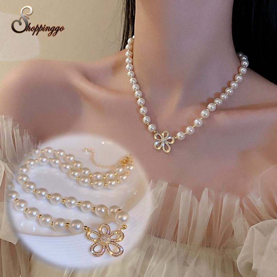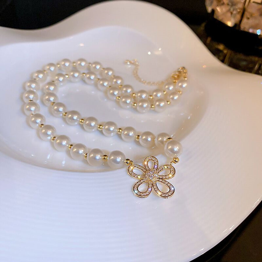 ネックレス フェイクパール ボリューム フラワーネックレス