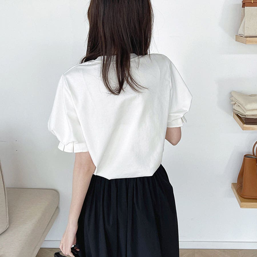 ほんのり甘いふっくら袖が可愛さと大人っぽさをプラスになる 。
