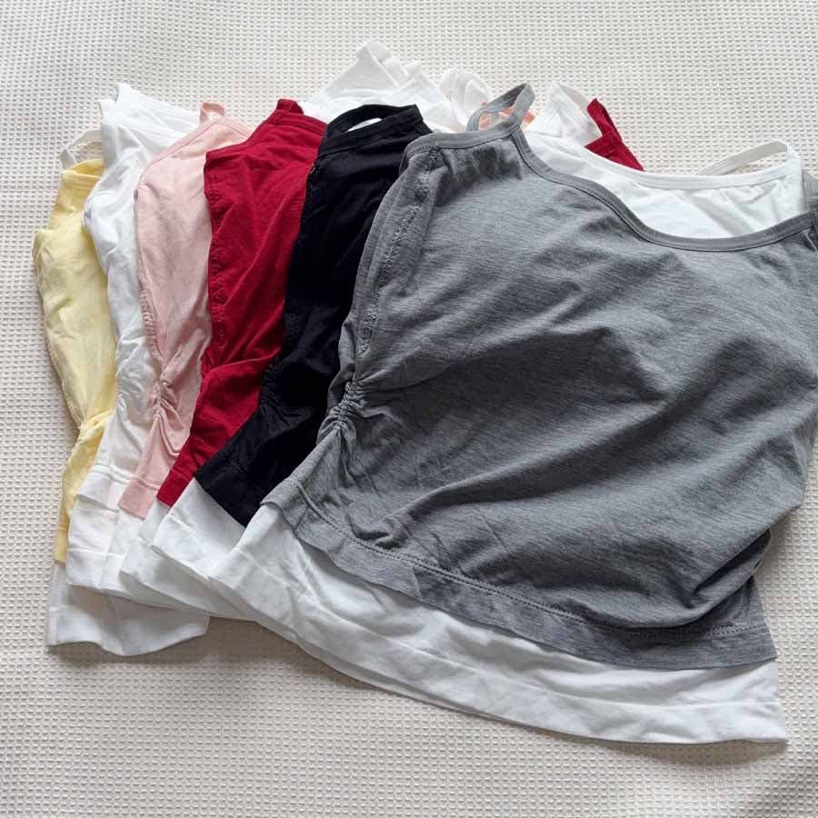 カップ付きで、インナーとしてもトップスとしても使い勝手の良い一枚。