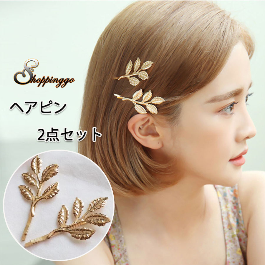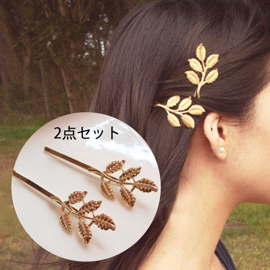 ヘアピン 2点セット ヘアアクセサリー 木の葉 シンプル