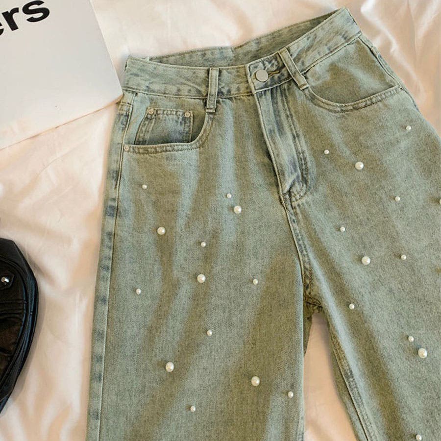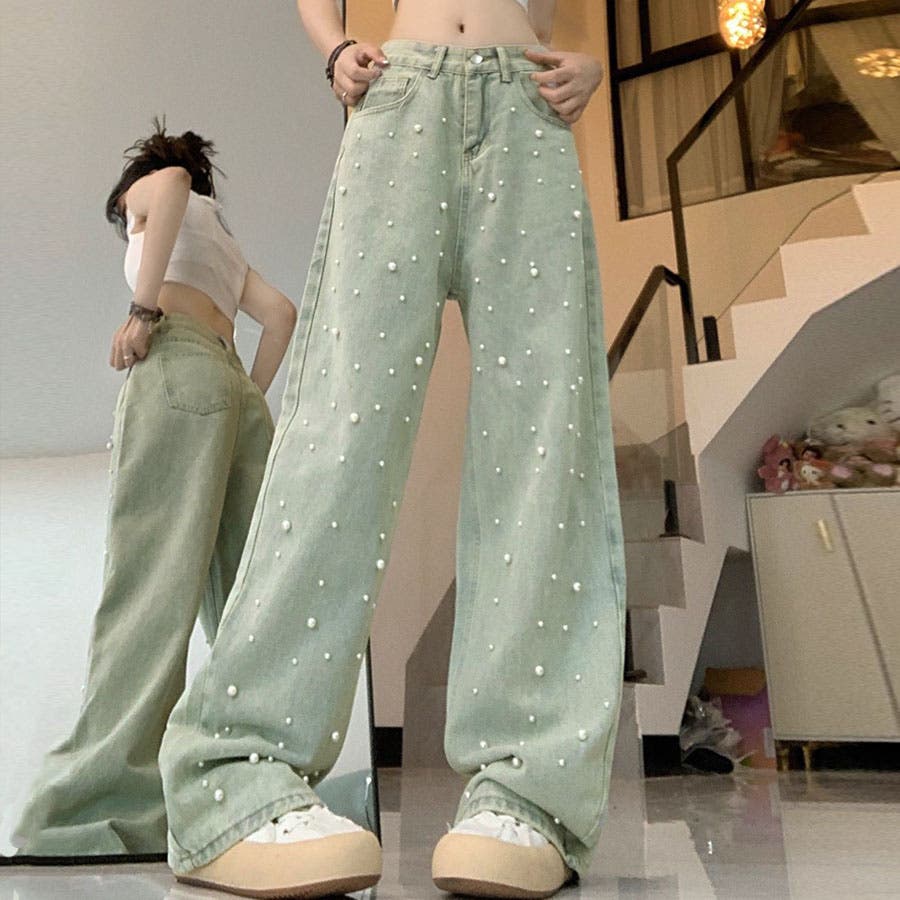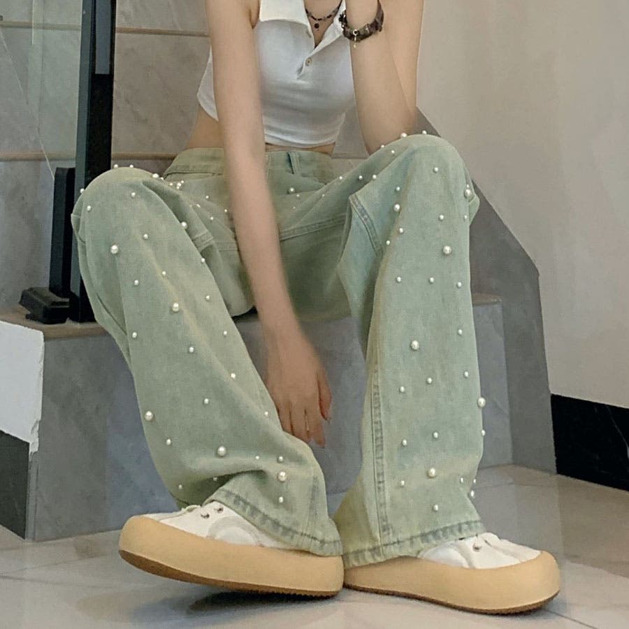 ハイウエストでクロップド丈のトップスと相性抜群です。