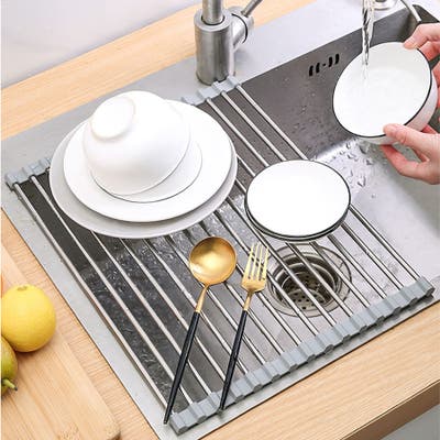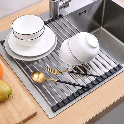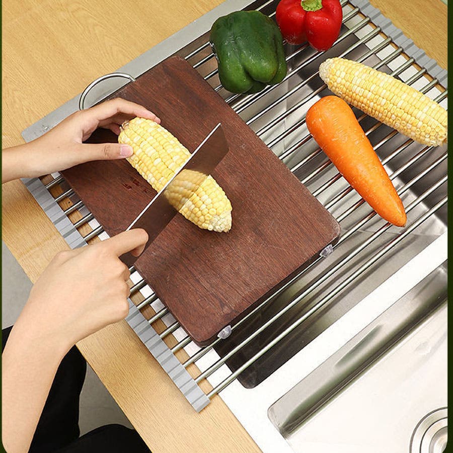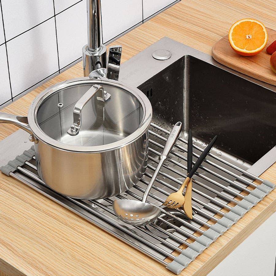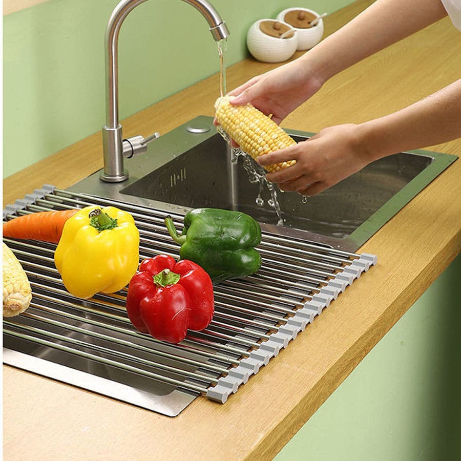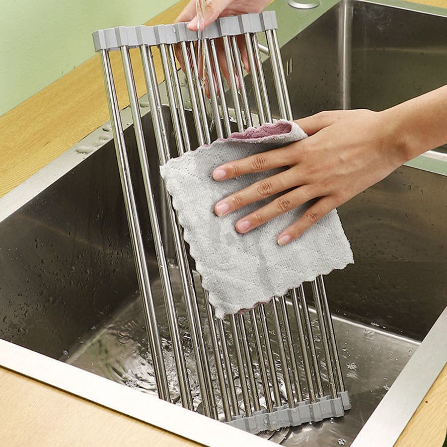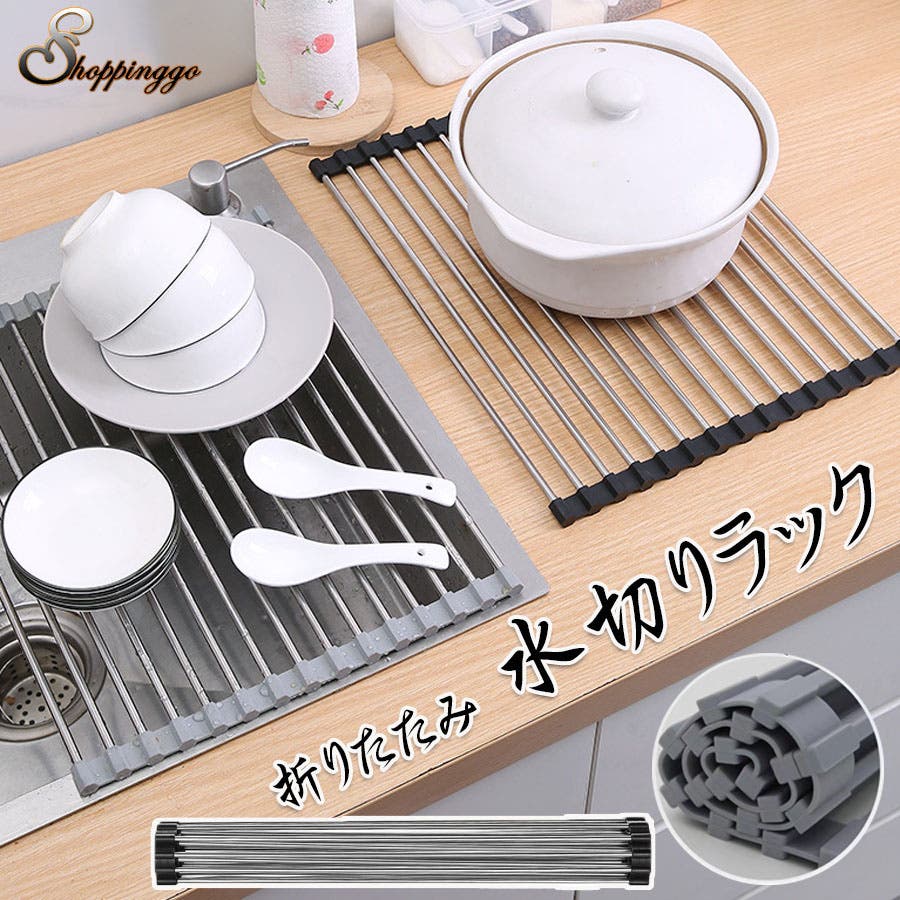 シンクの幅に合わせて折りたたんだり、カットしたりで幅の調節も可能使わない時はサッとしまえるスッキ。