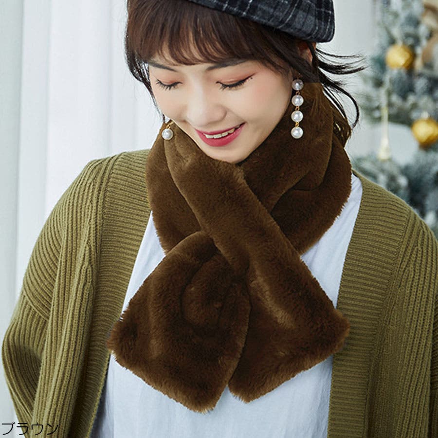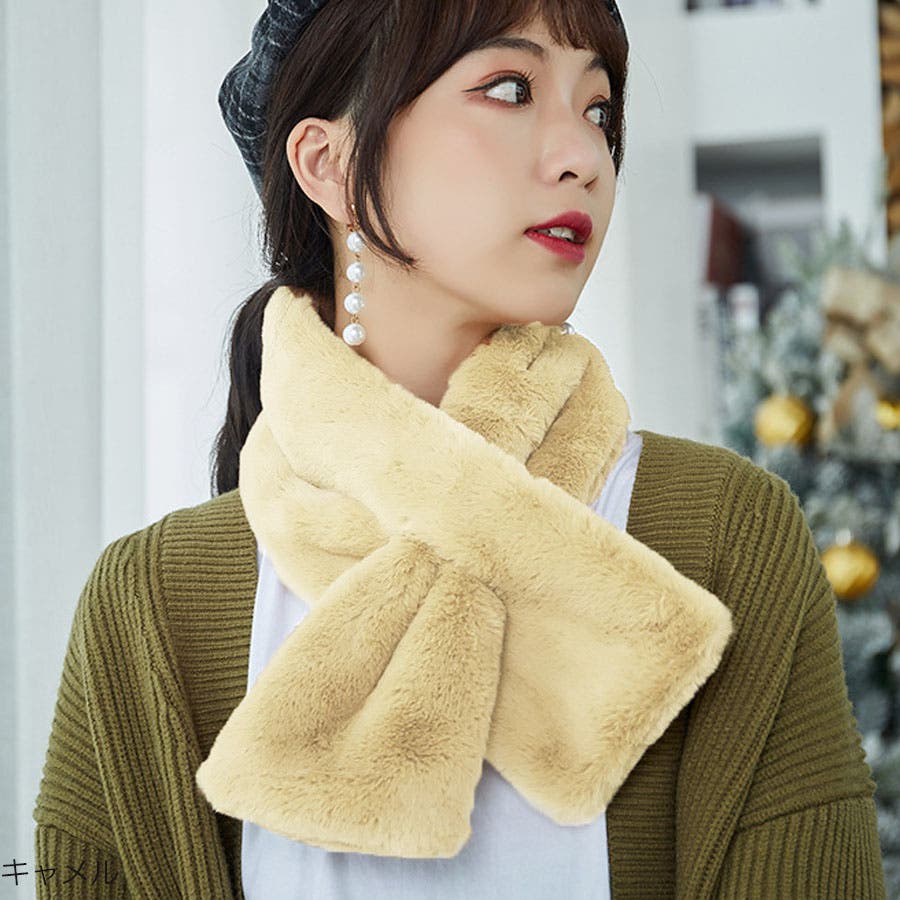【キャメル】マフラー ティペット フェイクファー