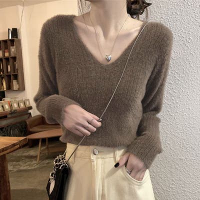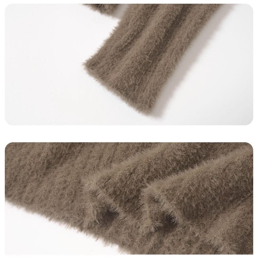 ふわふわした柔らかなショート丈シャギーニットトップス。