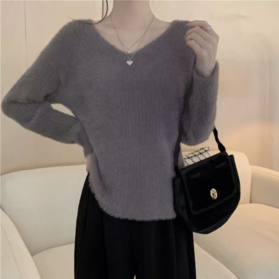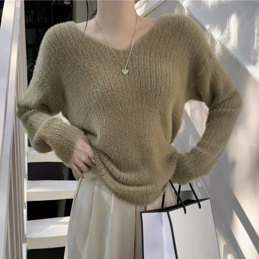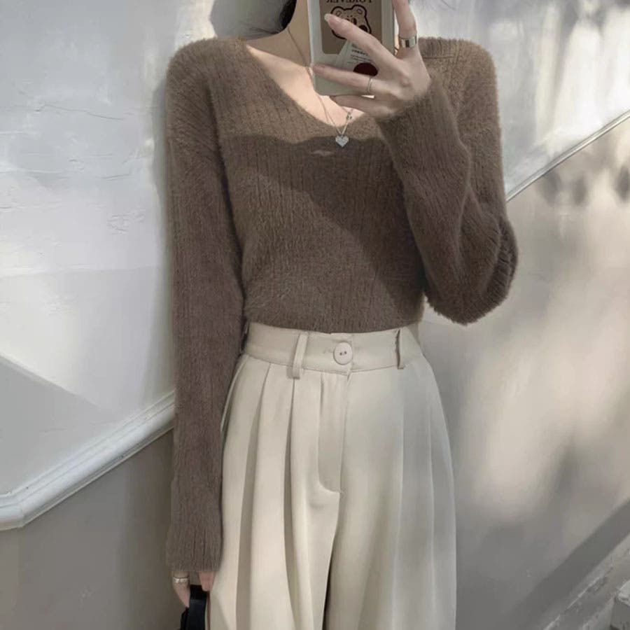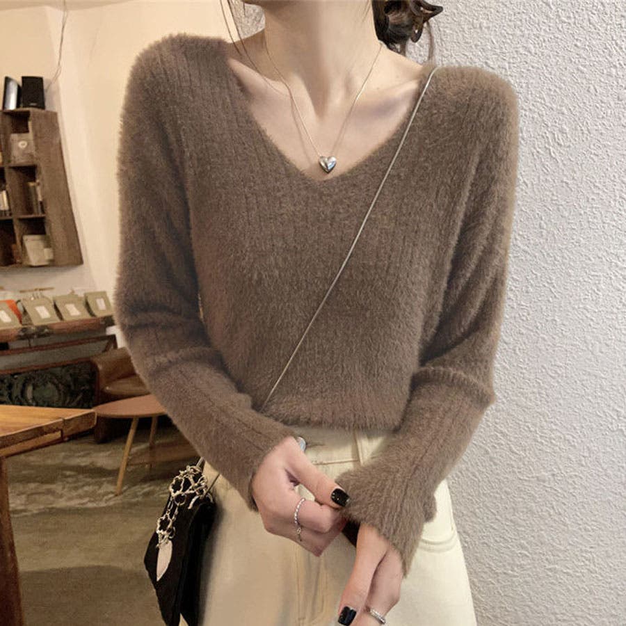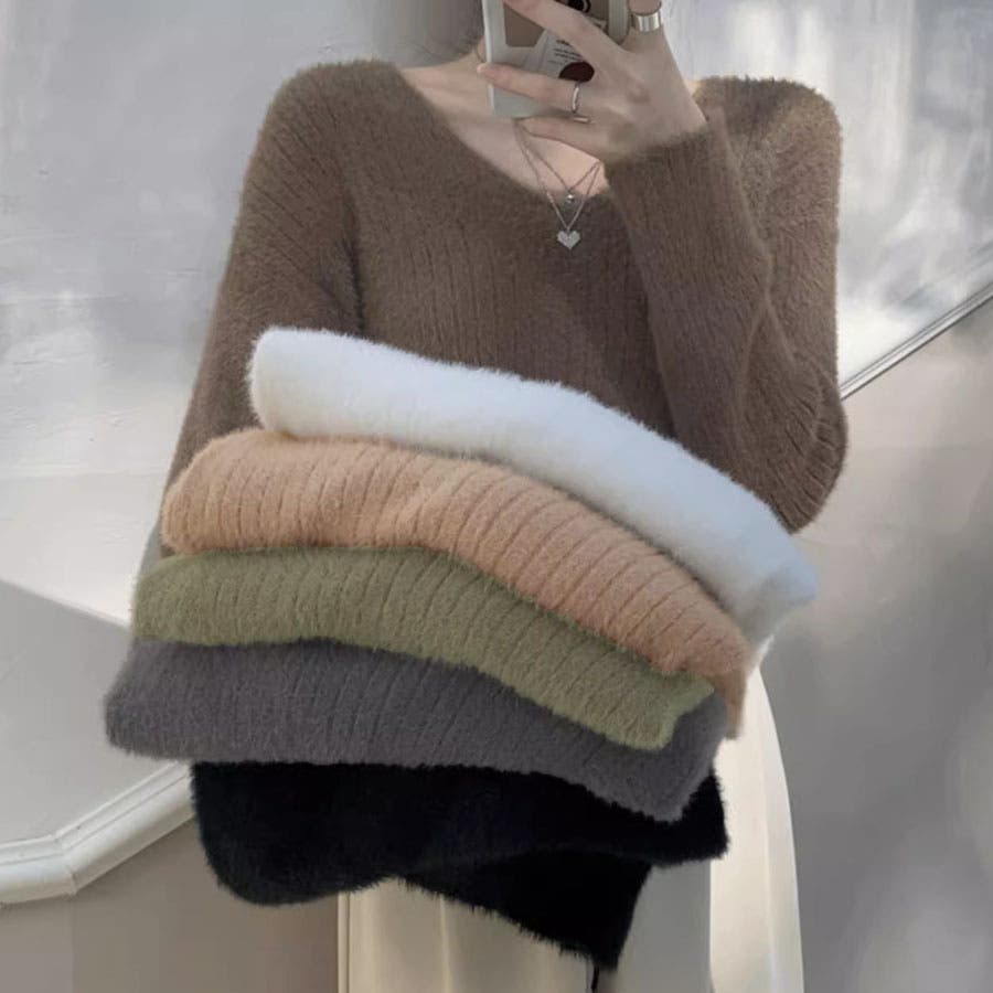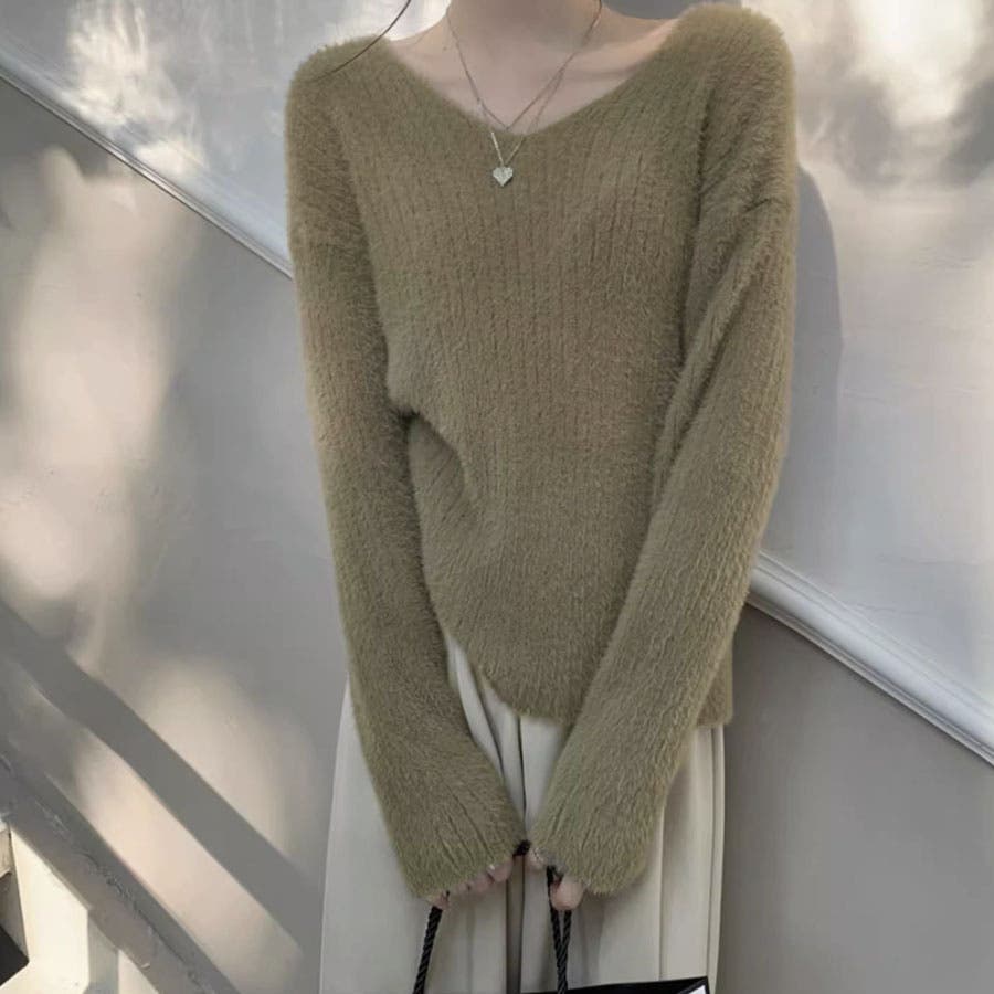 ニットセーター Vネック シャギーニット