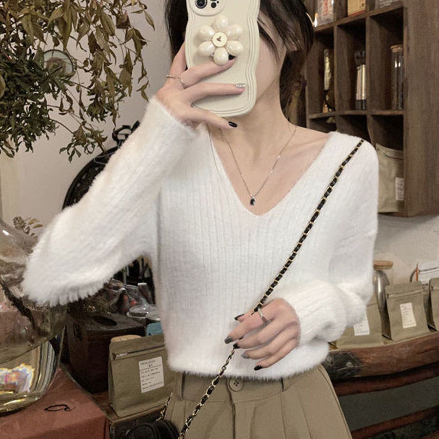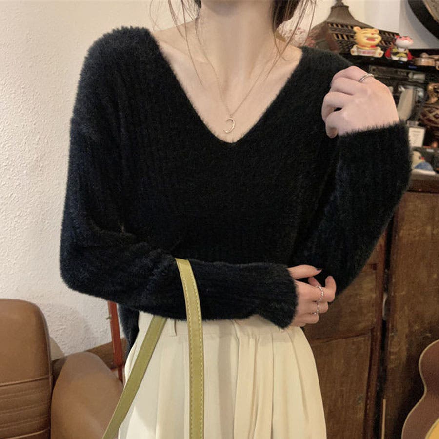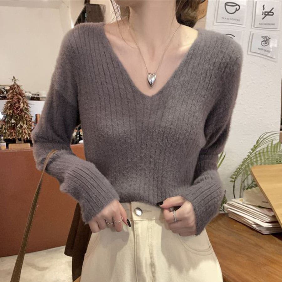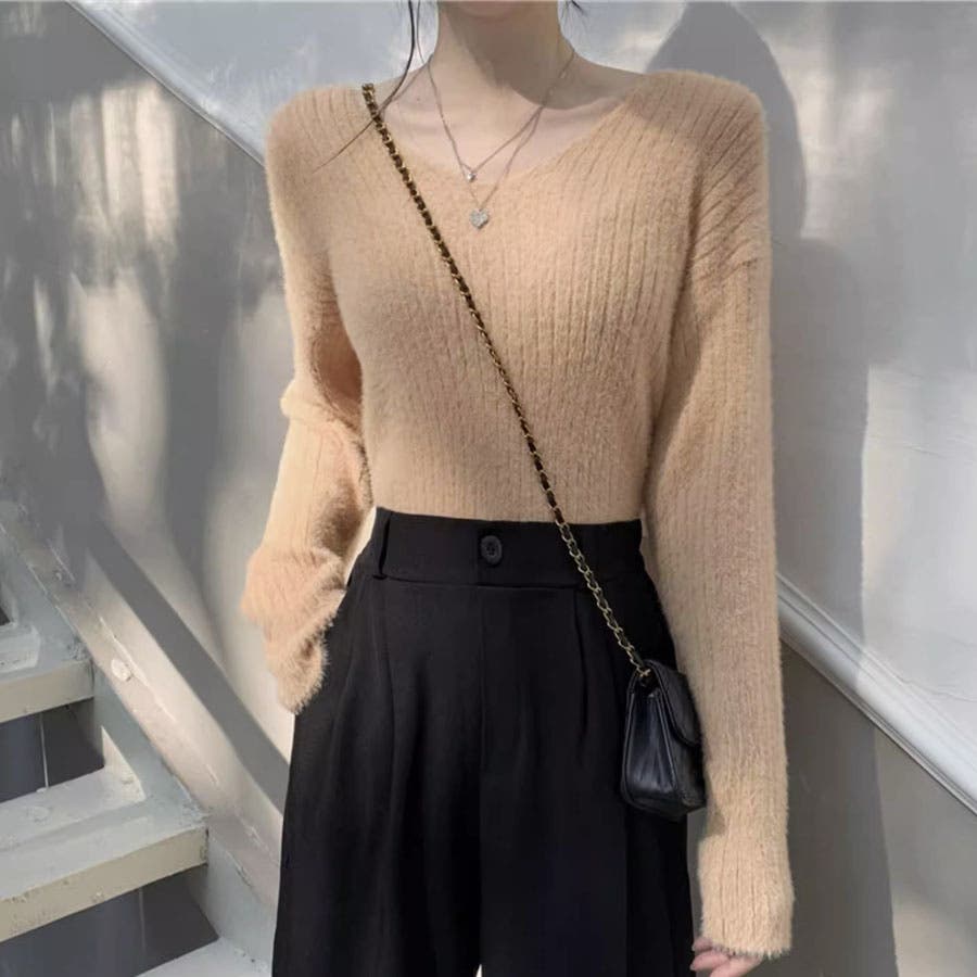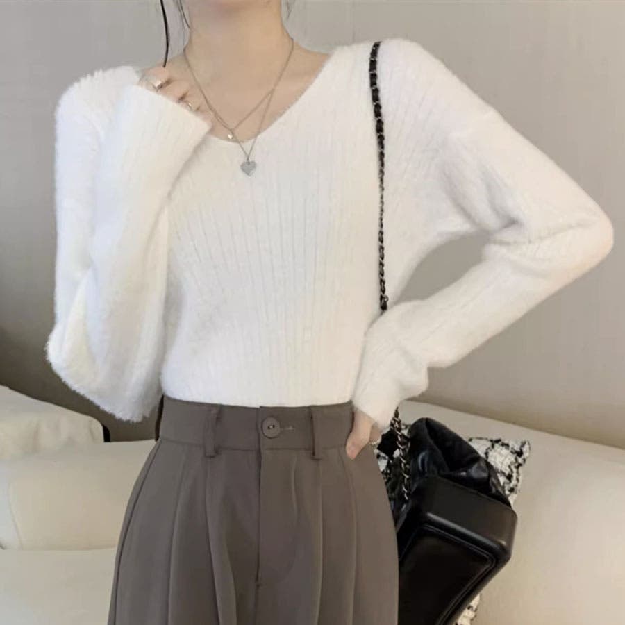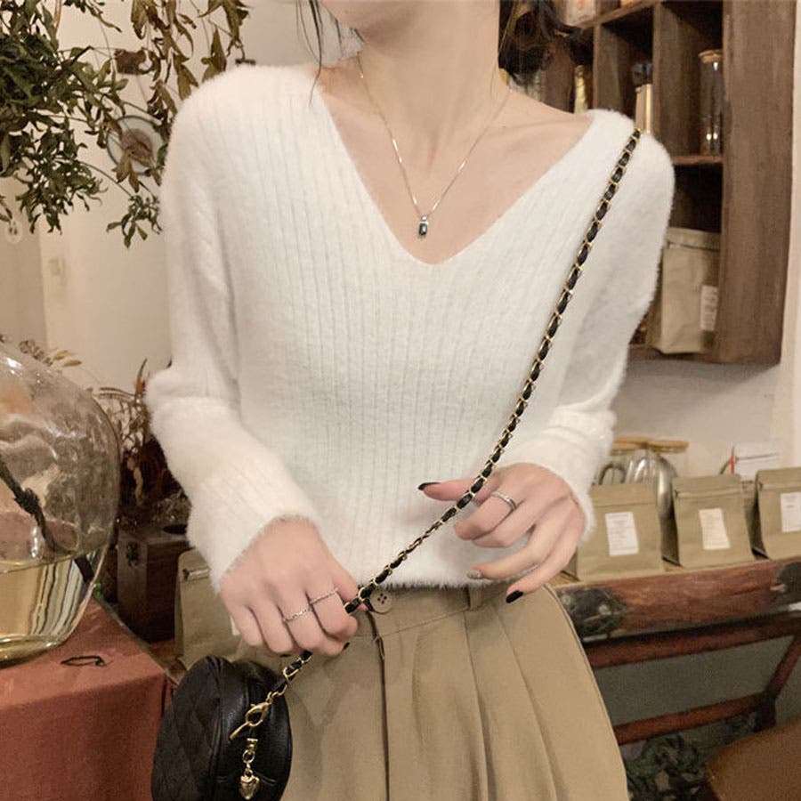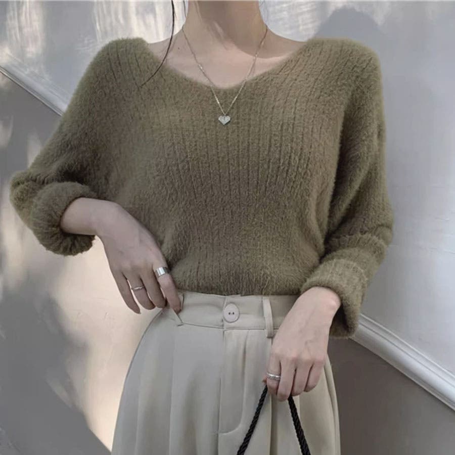 ニットセーター Vネック シャギーニット