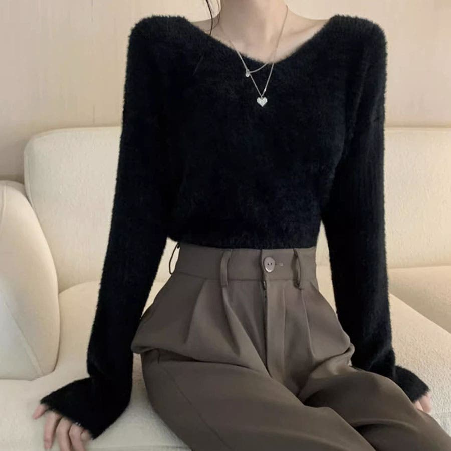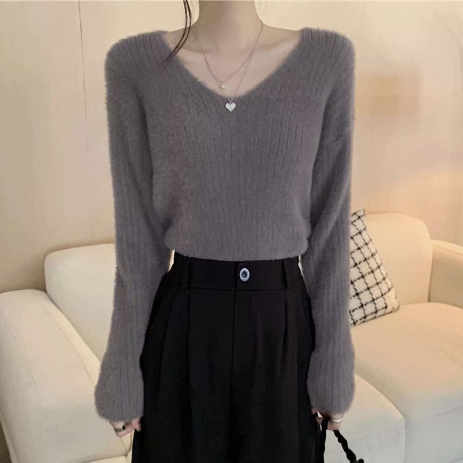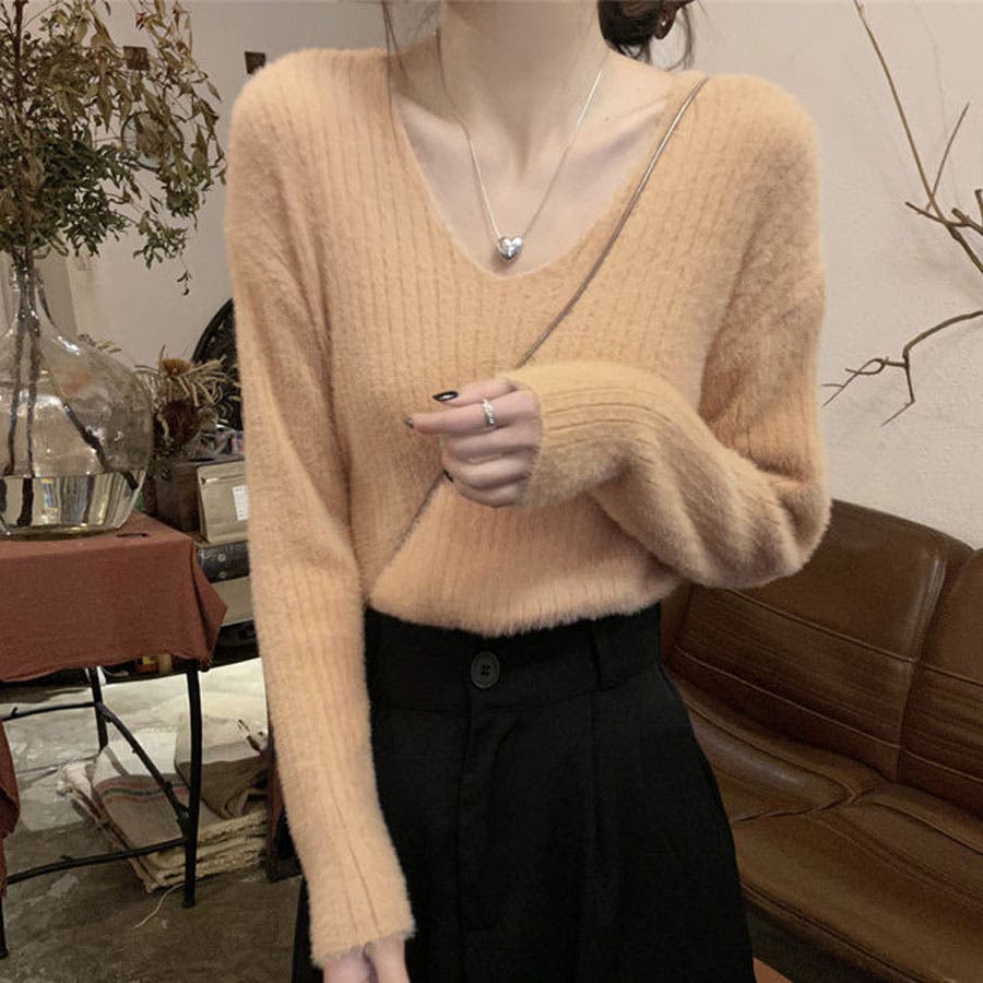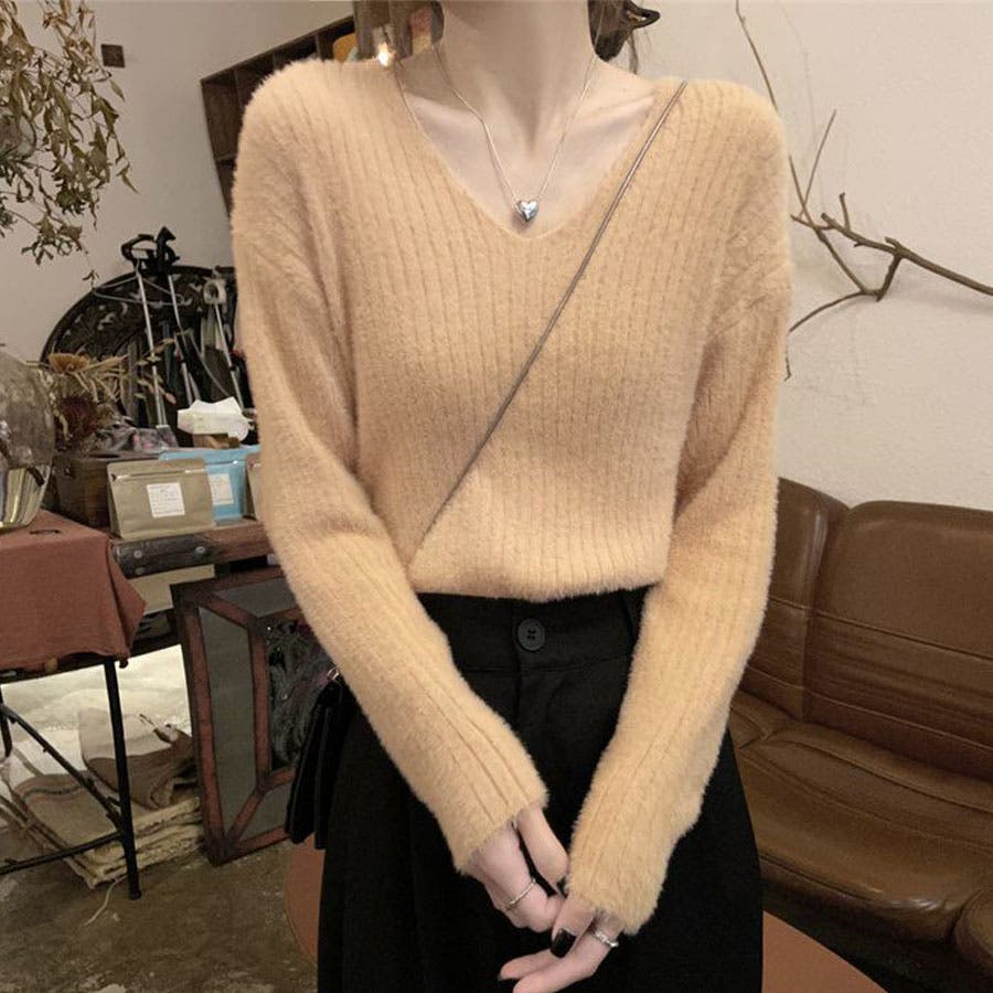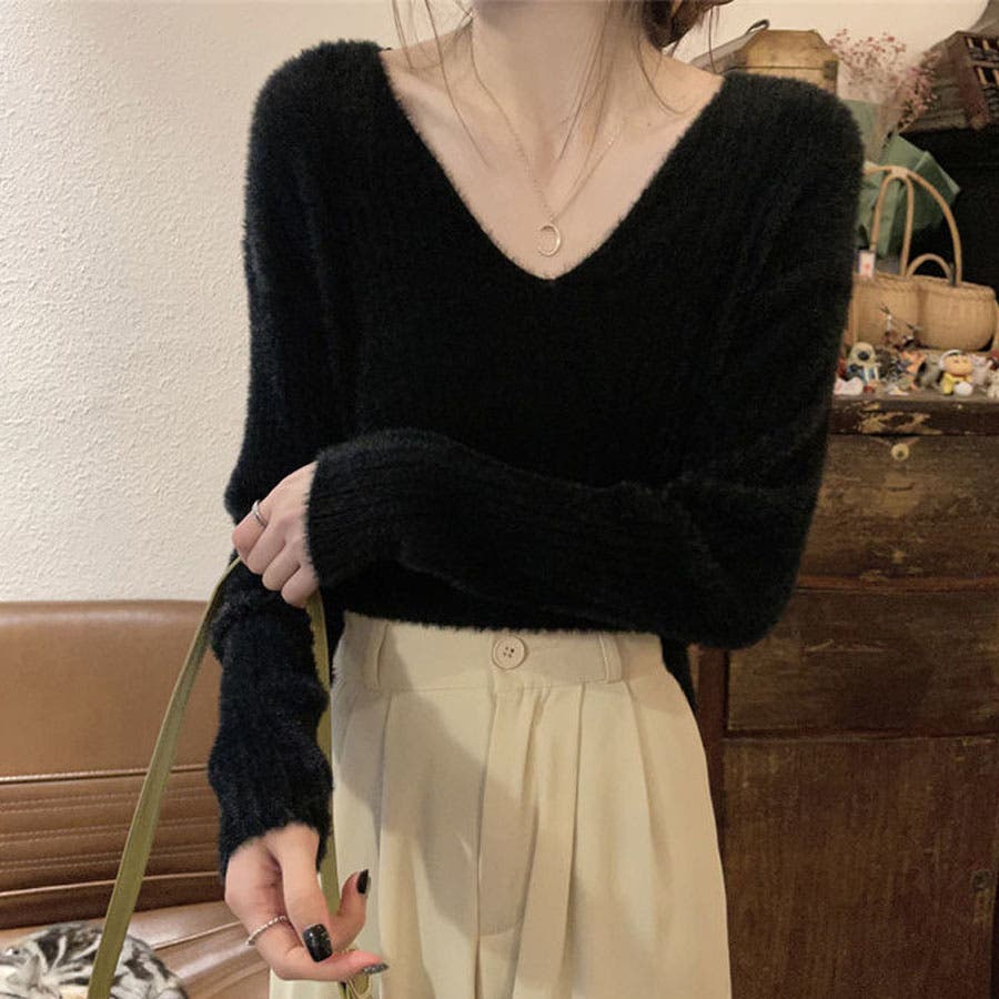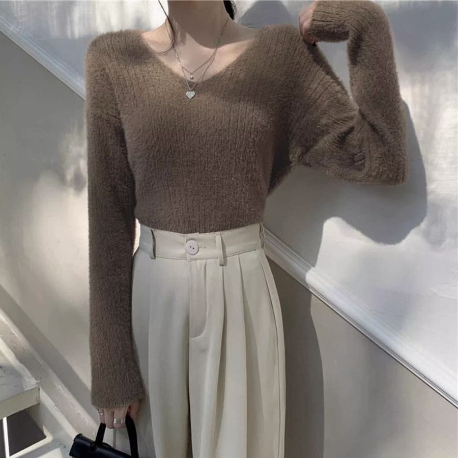 ニットセーター Vネック シャギーニット