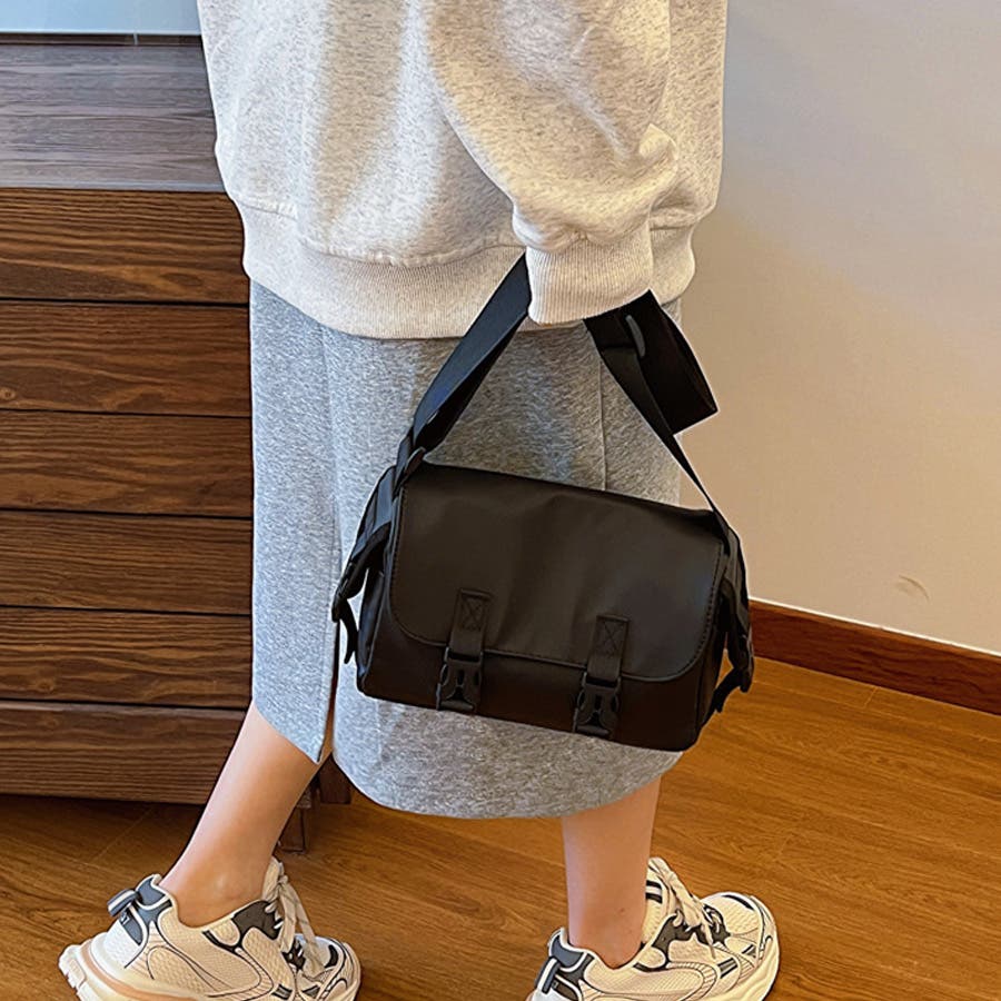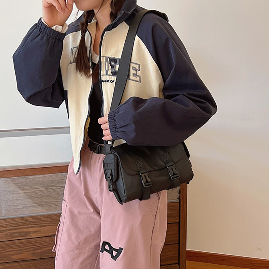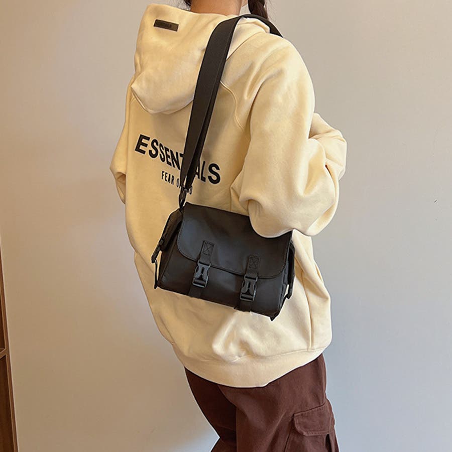小さめのサイズ感で、無地なのでコーディネートにも合わせやすい。