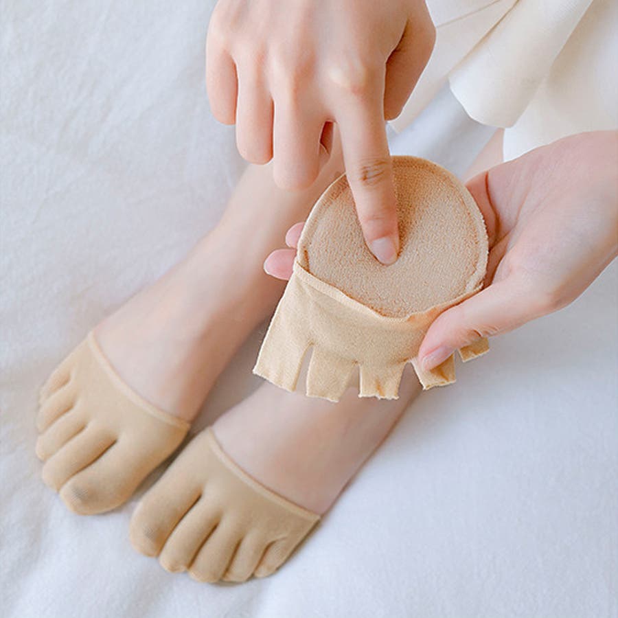 パンプスやハイヒール、つま先やかかと部分が露出したサンダルやミュールにも合わせて使える。