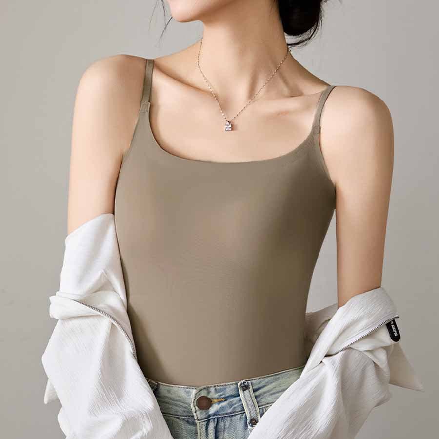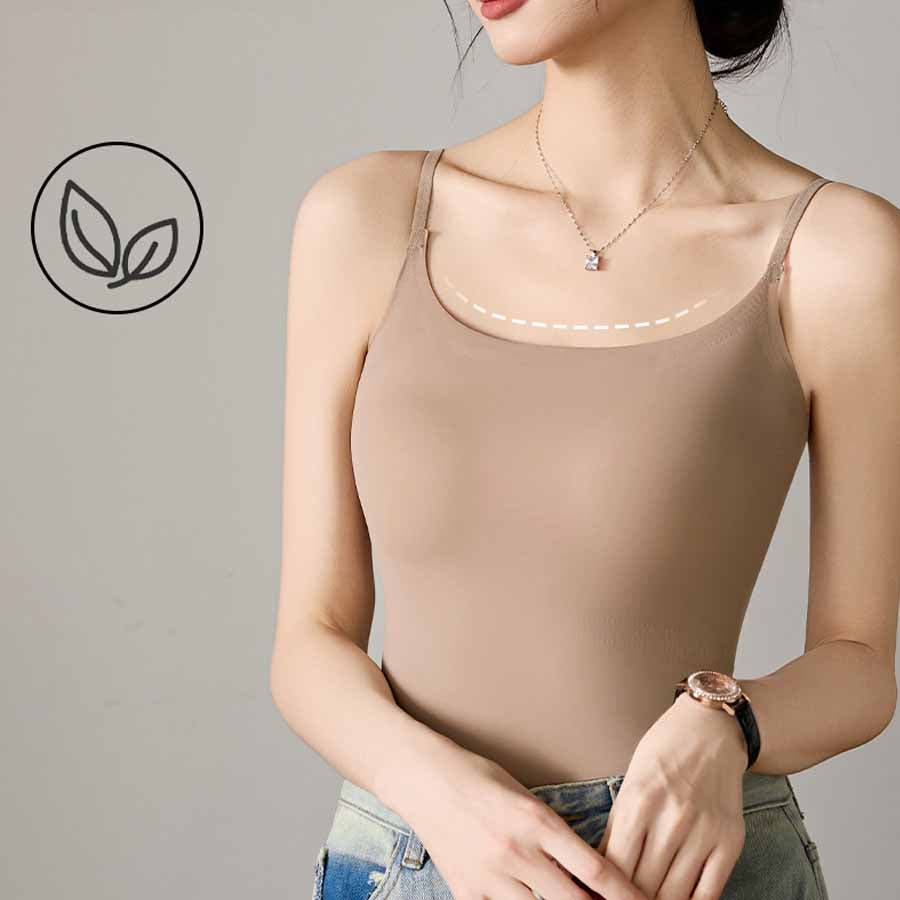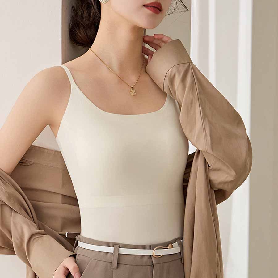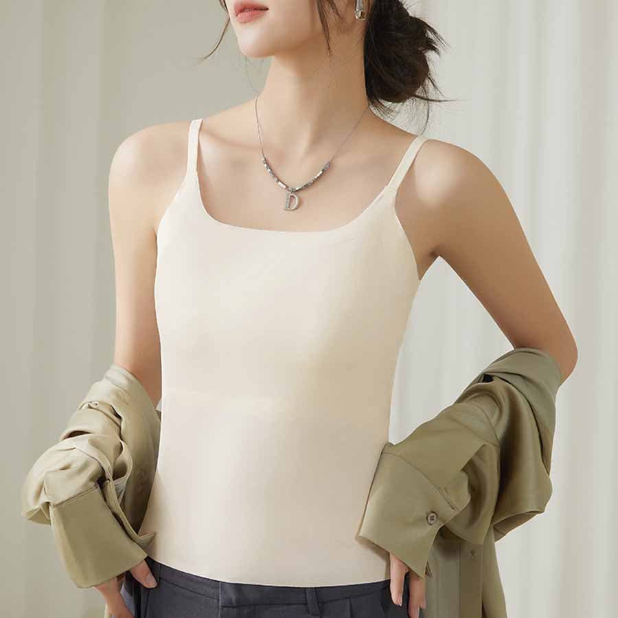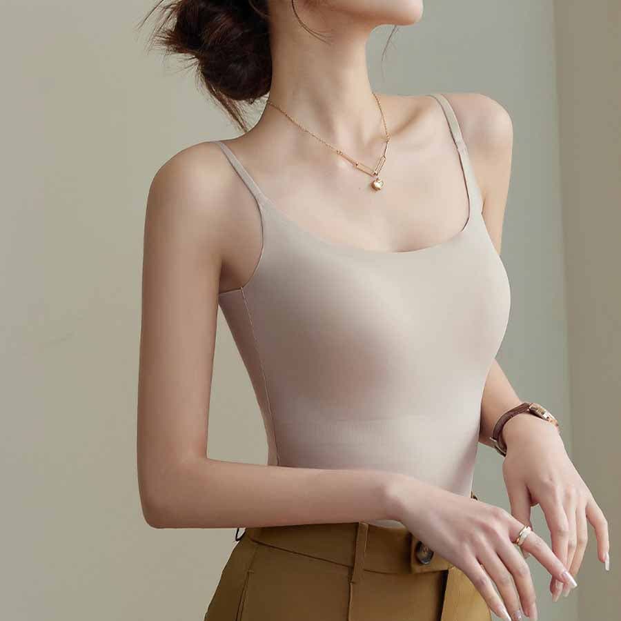 パット付シンプルで使いやすい定番シームレスキャミソール。