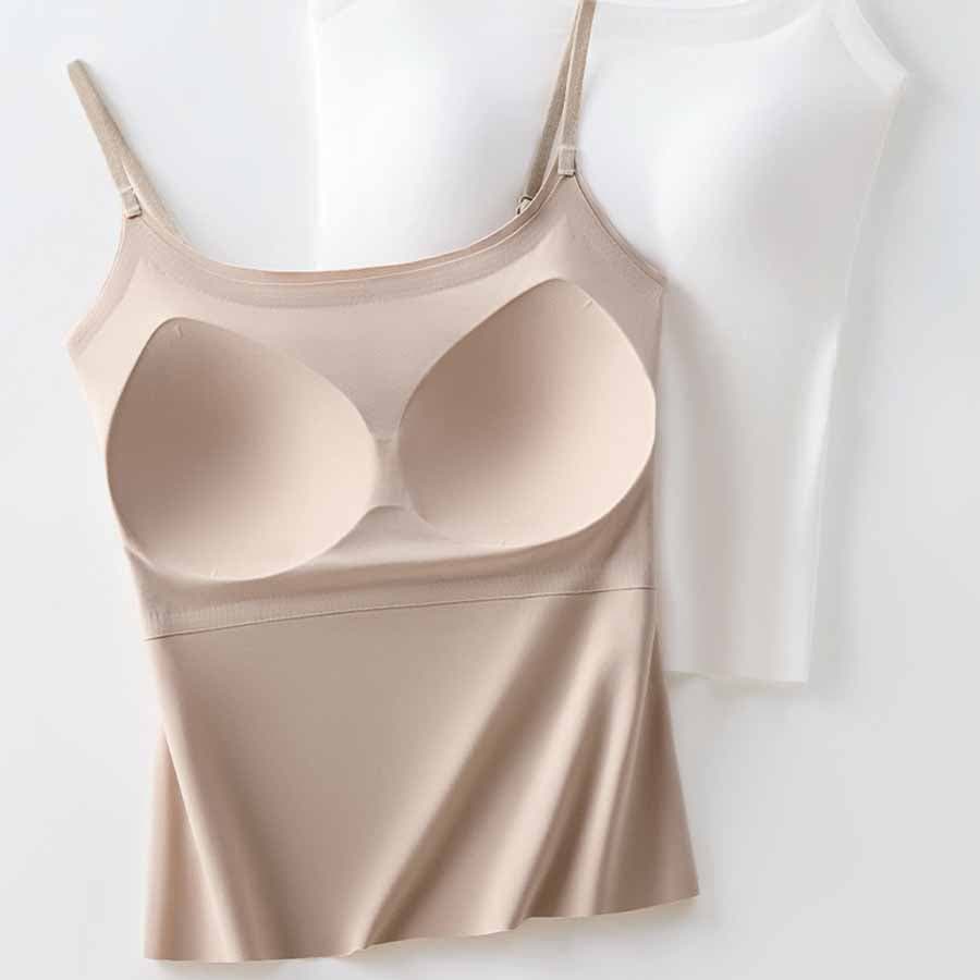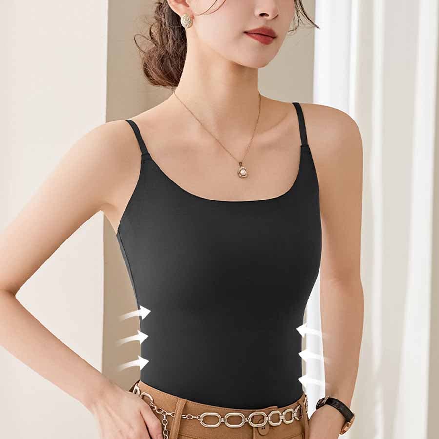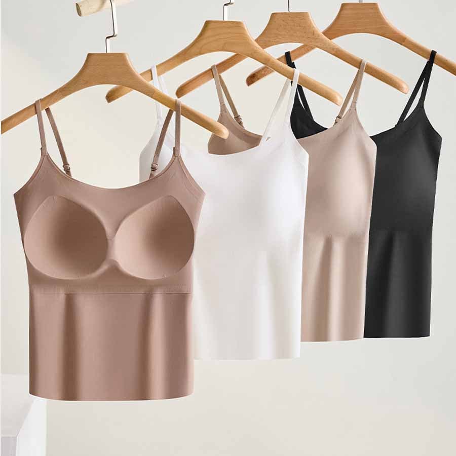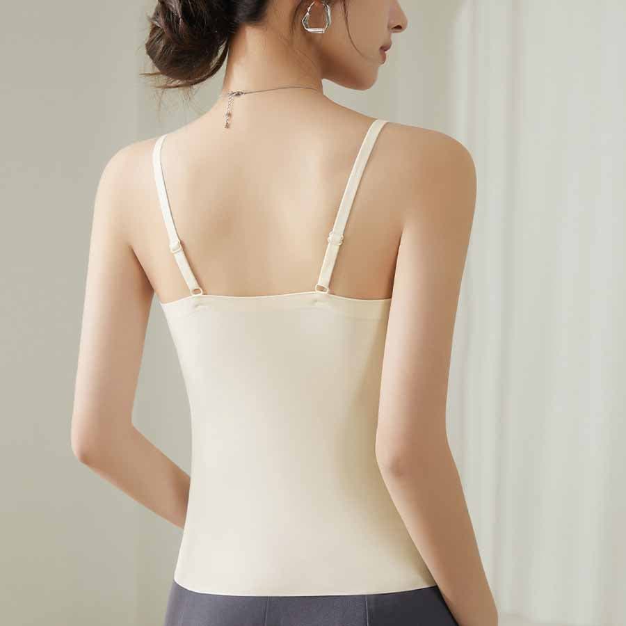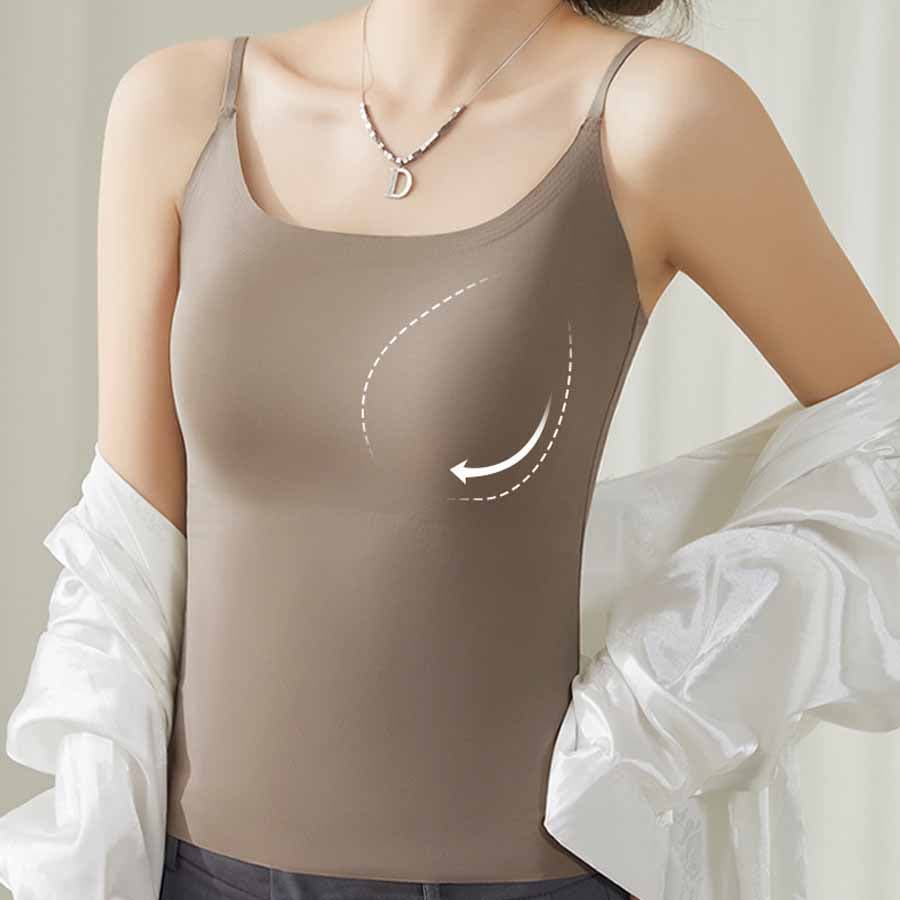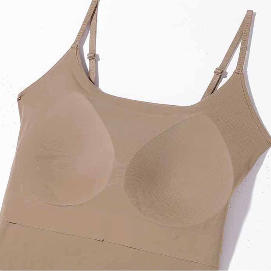 パット付シンプルで使いやすい定番シームレスキャミソール。