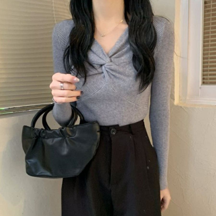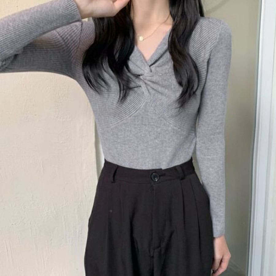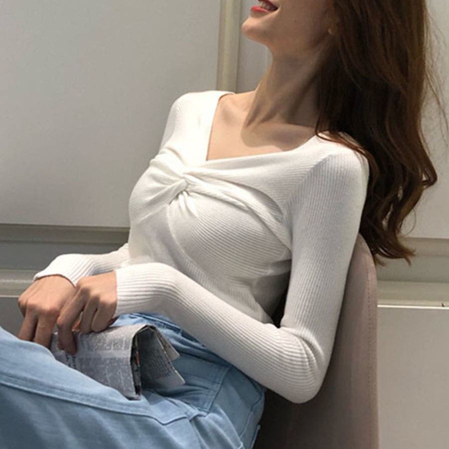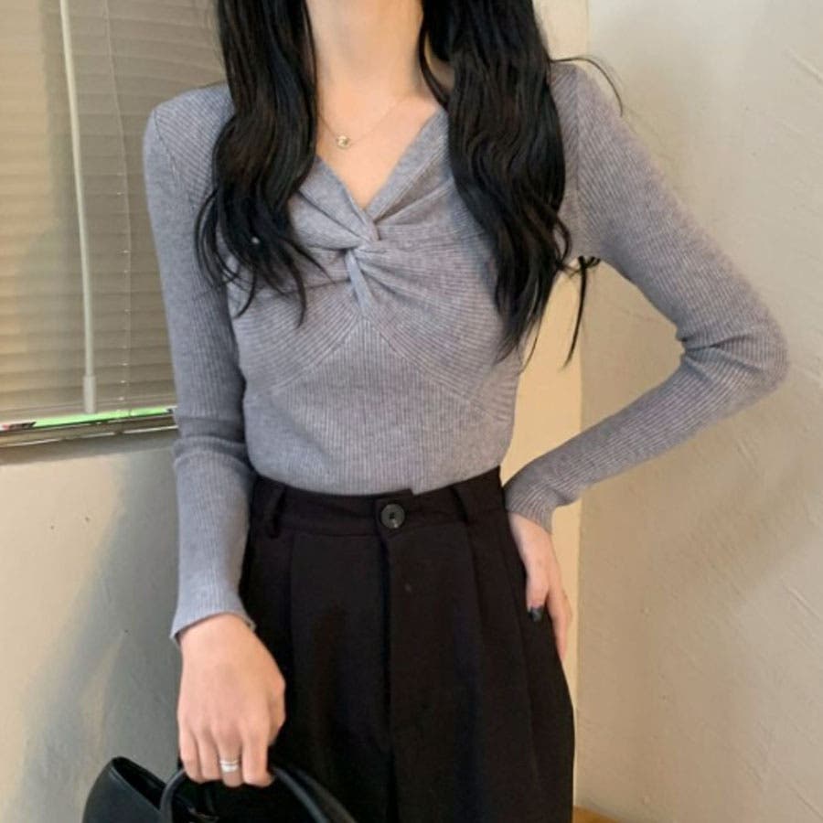 リブニット ツイスト トップス