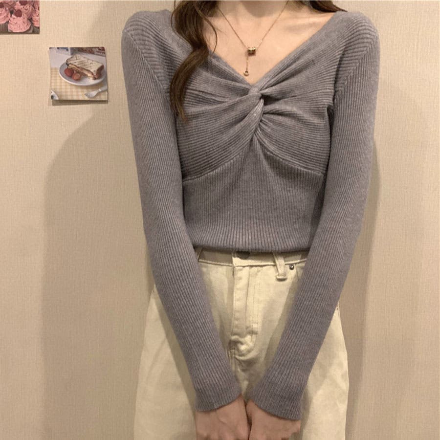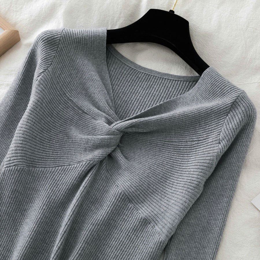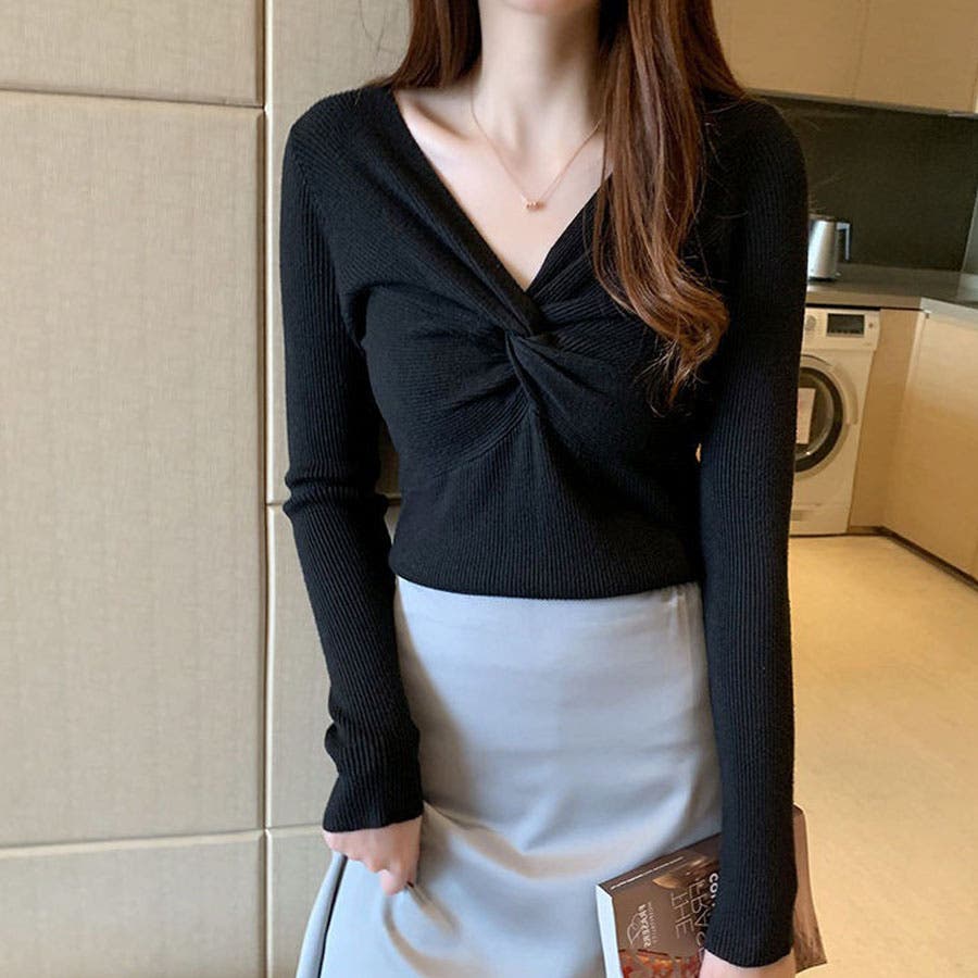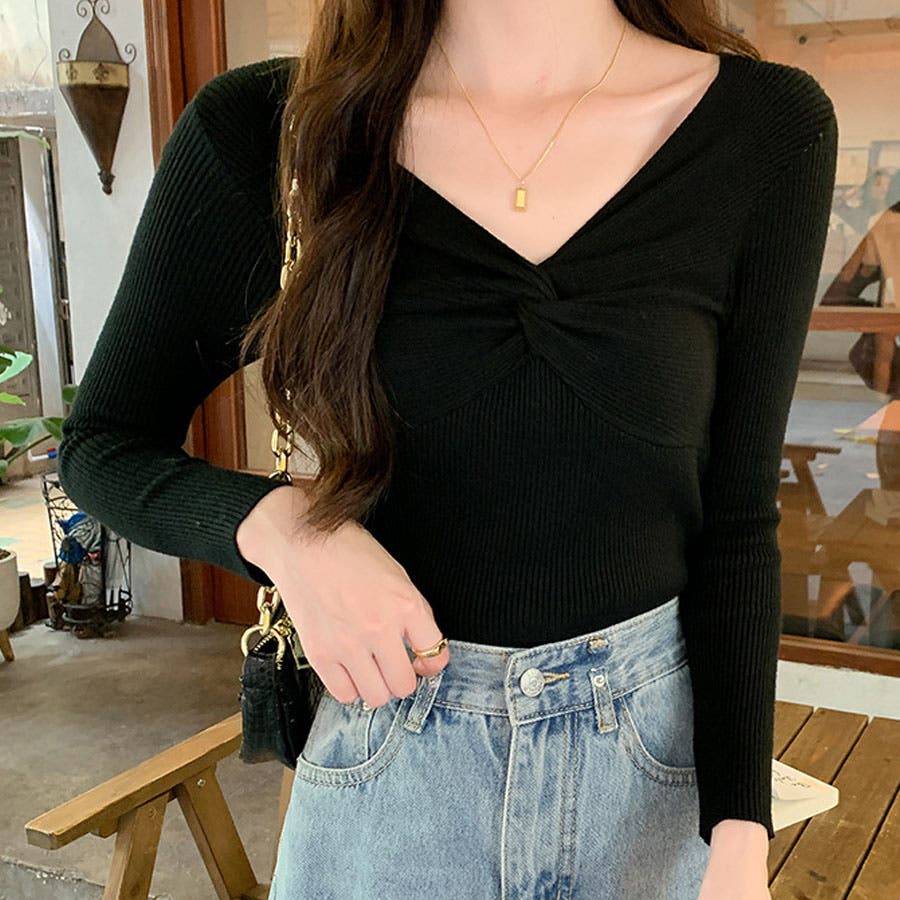 リブニット ツイスト トップス