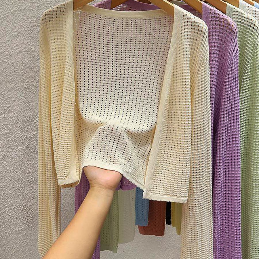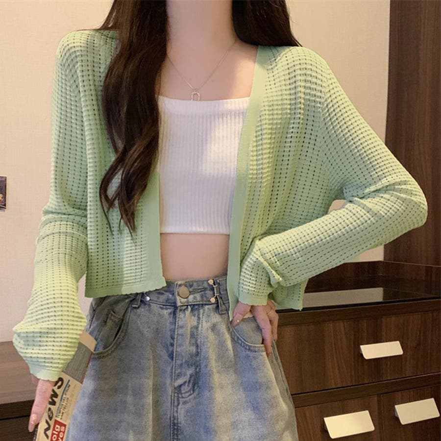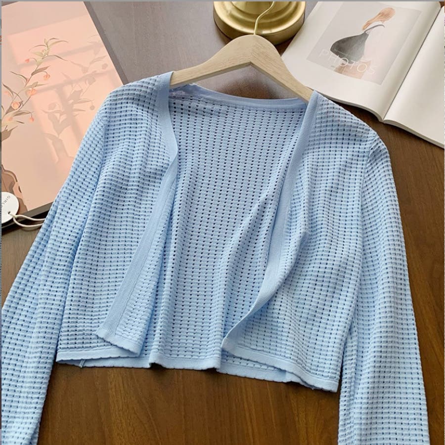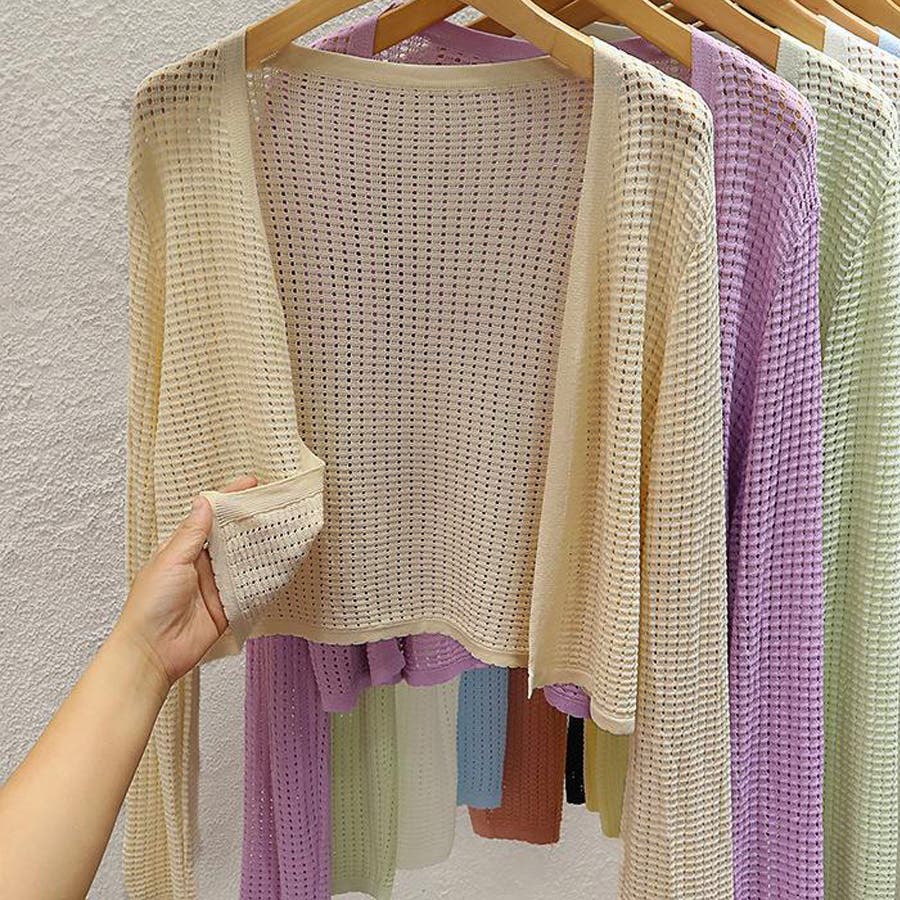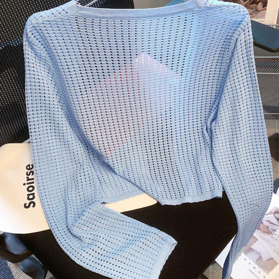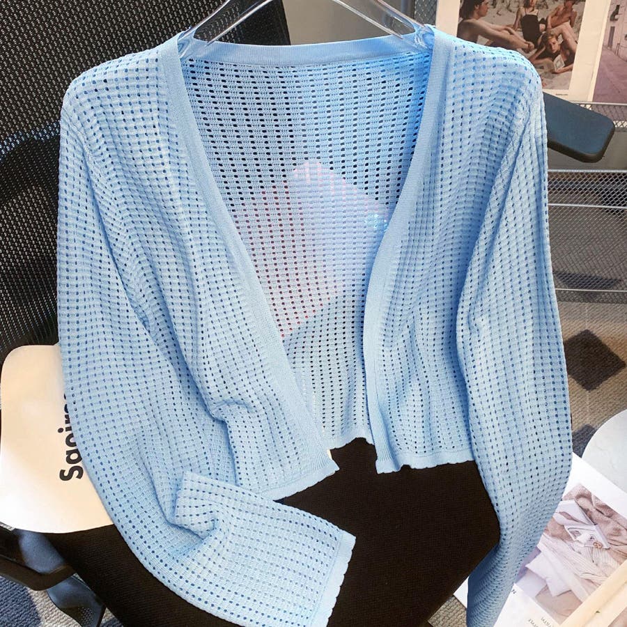 サマーカーディガン 透かし編み Vネックカーディガン