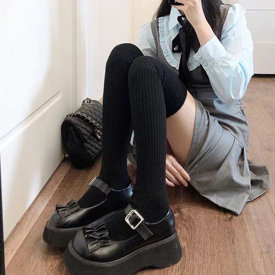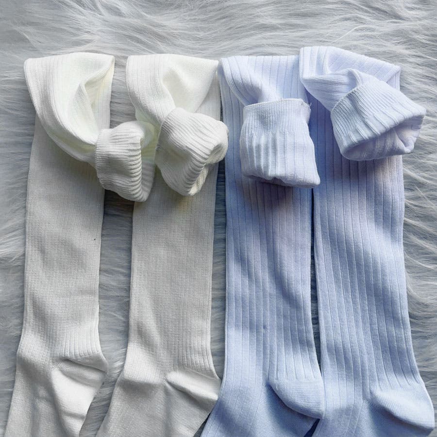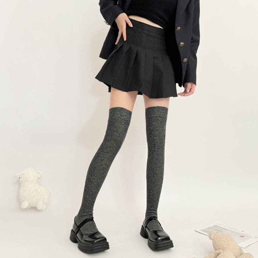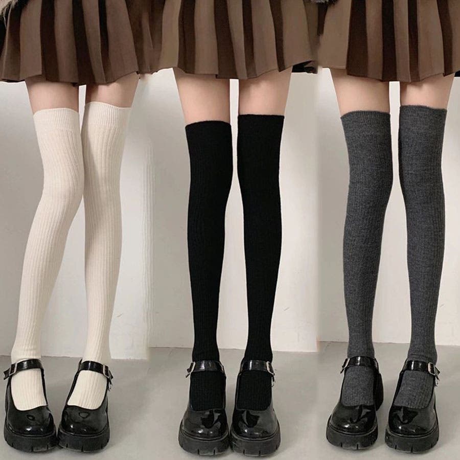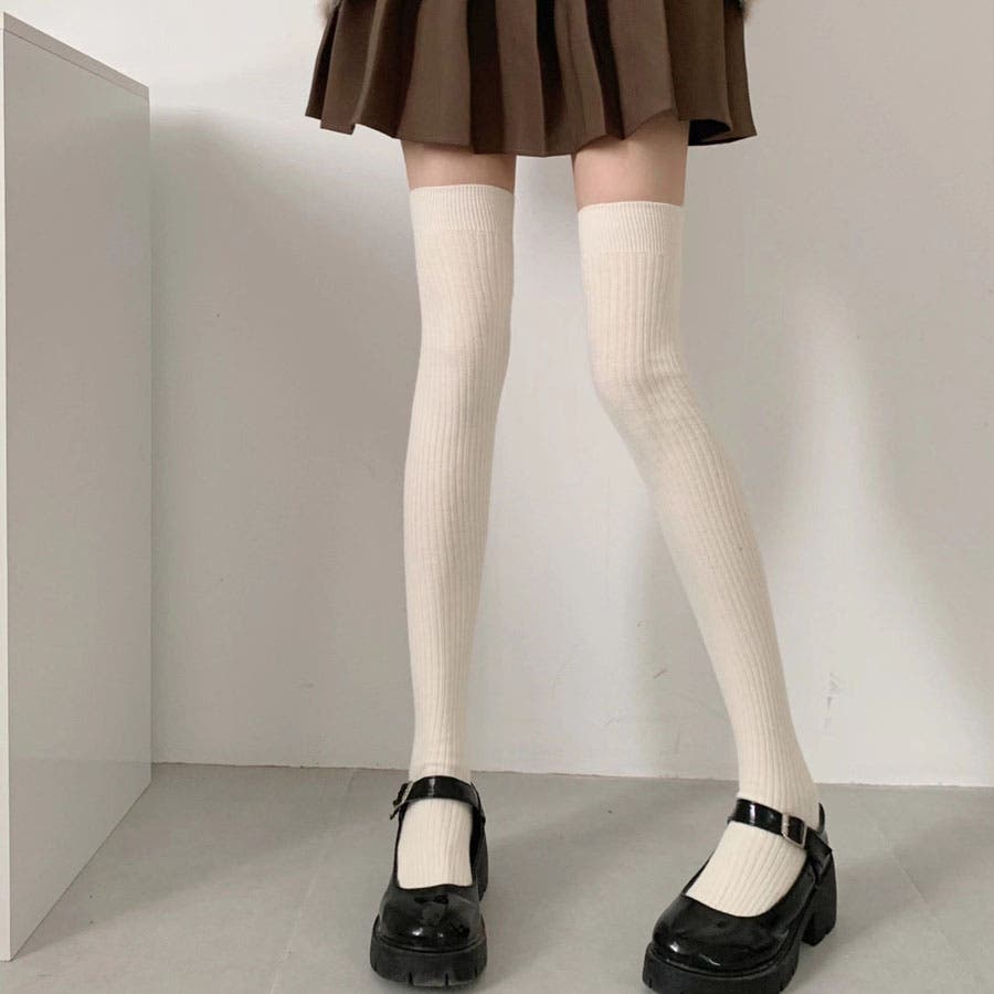 ニーハイソックス 縦リブ ストッキング