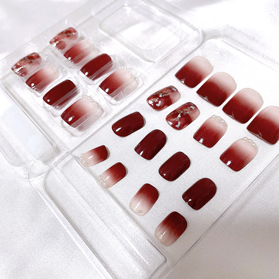 ・隙間などがある場合、水などが入りやすく爪が変色する場合がございますのでご注意ください。