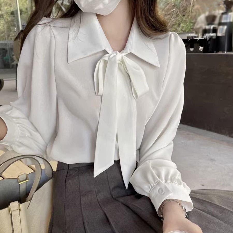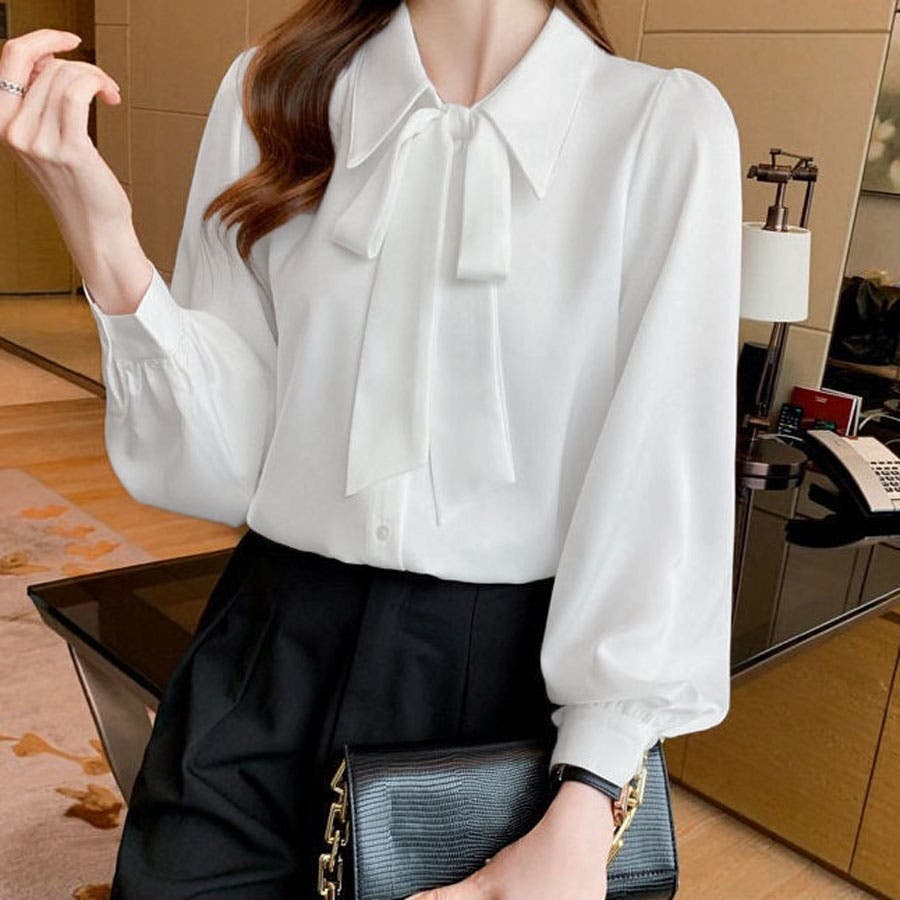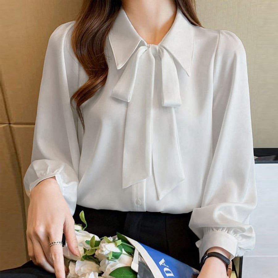 シャツ レディース リボン付きシャツ