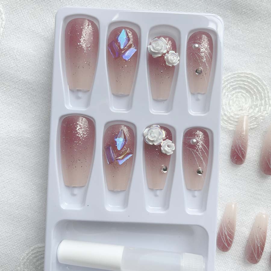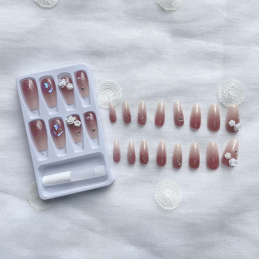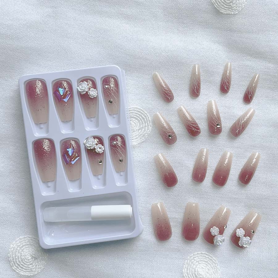長めです。。おはなが、かわいいです。グラデーションで、きらきらもついているので、かわいくていいかんじです。