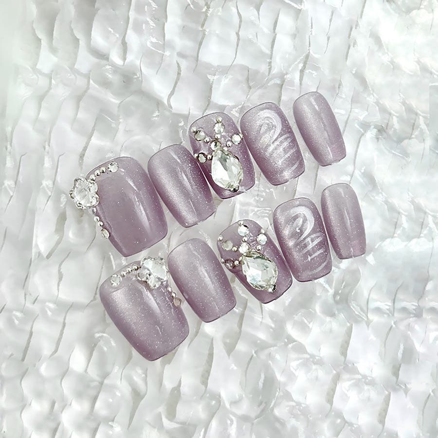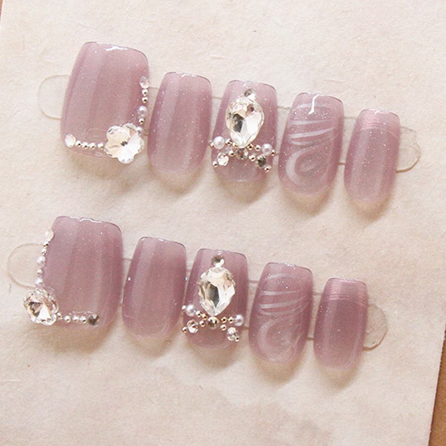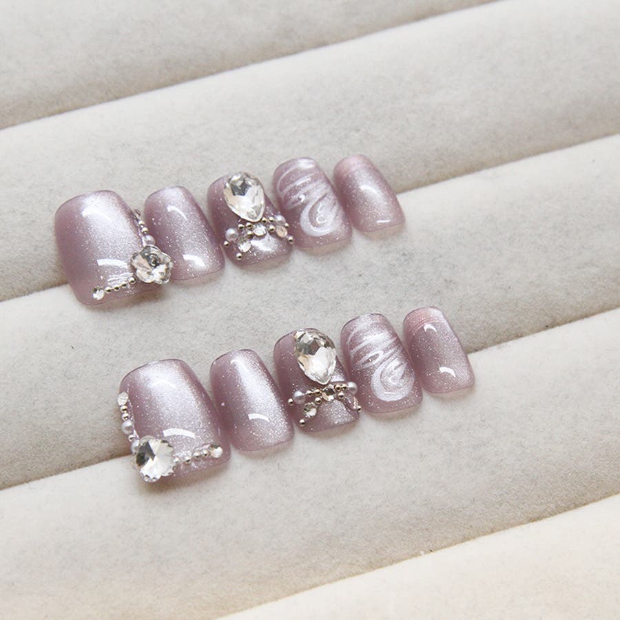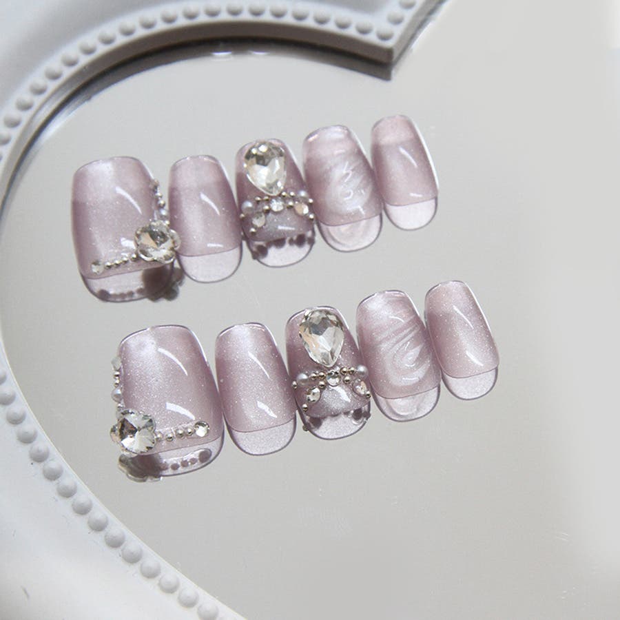 ネイルチップを爪の根本に合わせ、先端に向けて傾けるように貼れば完成です。