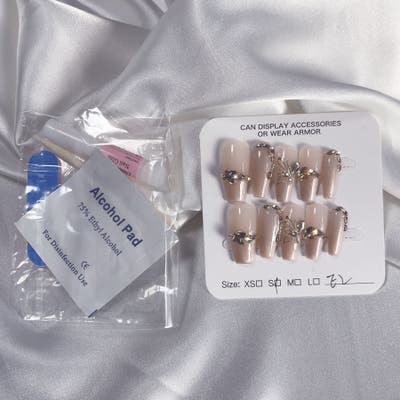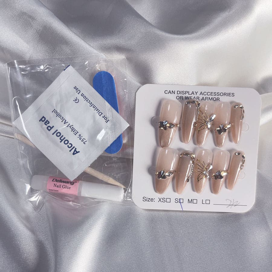 ネイルチップ 10枚、グルー2g×1本、粘着グミ24枚、爪やすり1個、ウッドスティック1本、アルコール 除菌シート1枚。