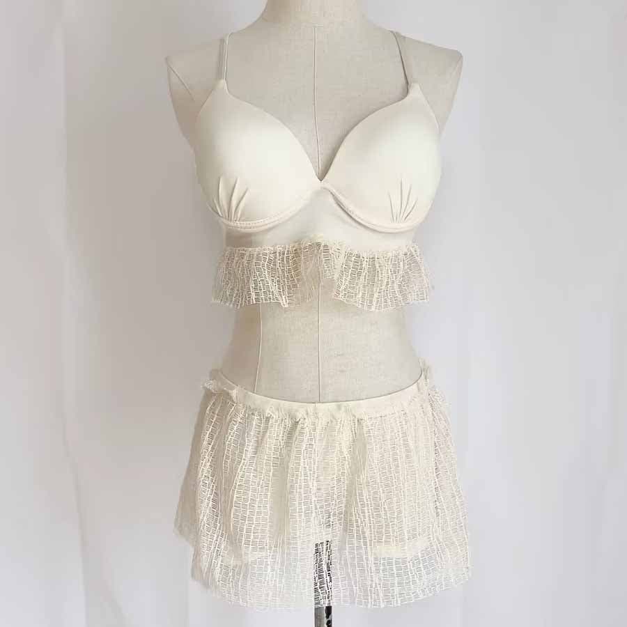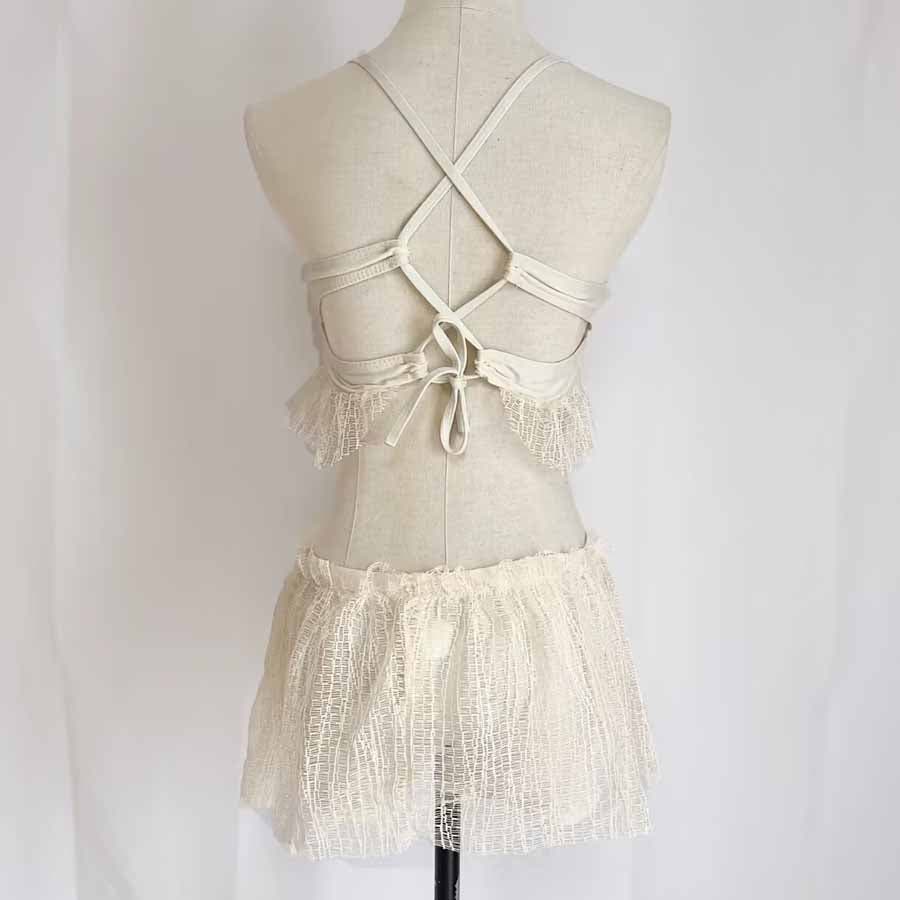 ブラは後ろりぼんで調整可能、可愛く体にフィット。