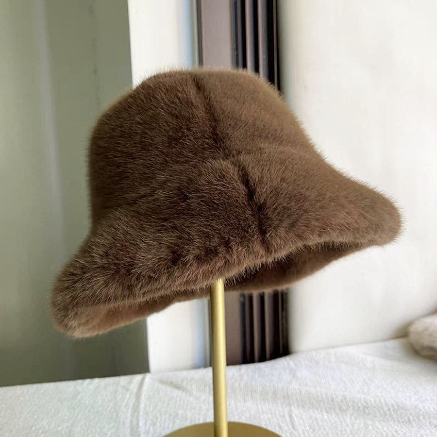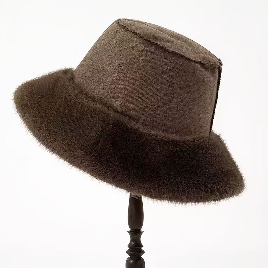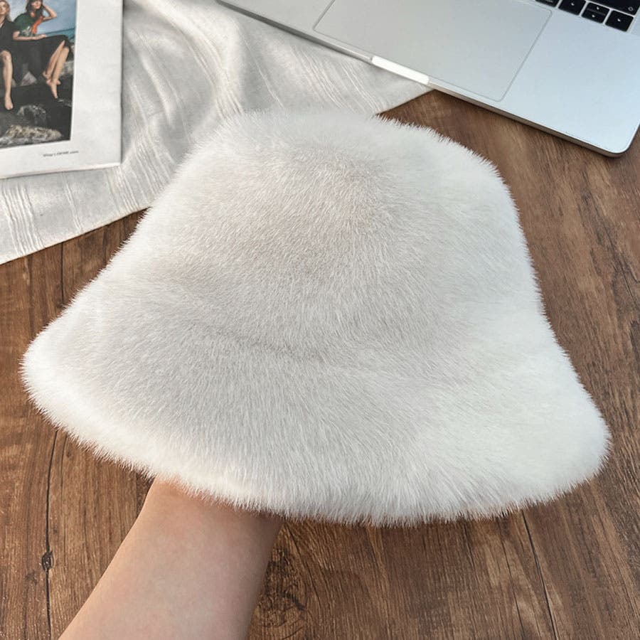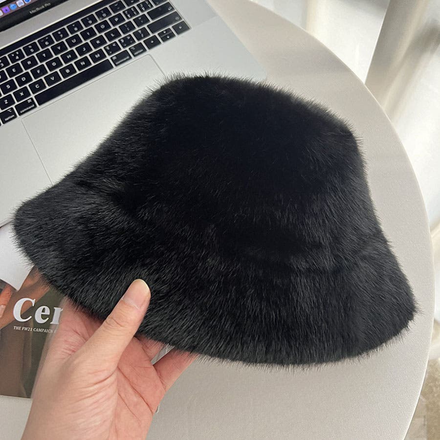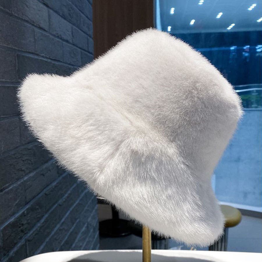 ふわふわのファーで被り心地のいいバケットハット。