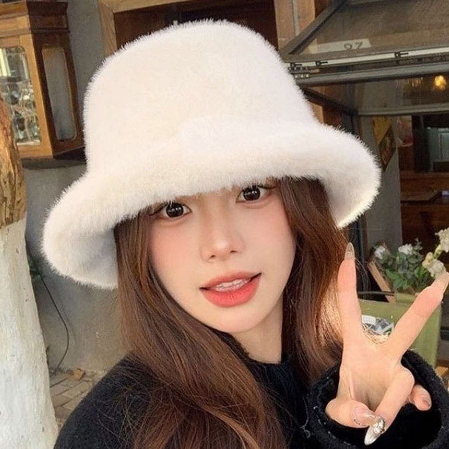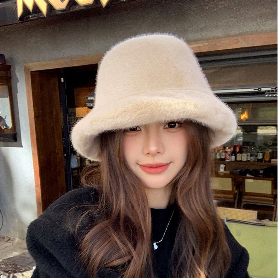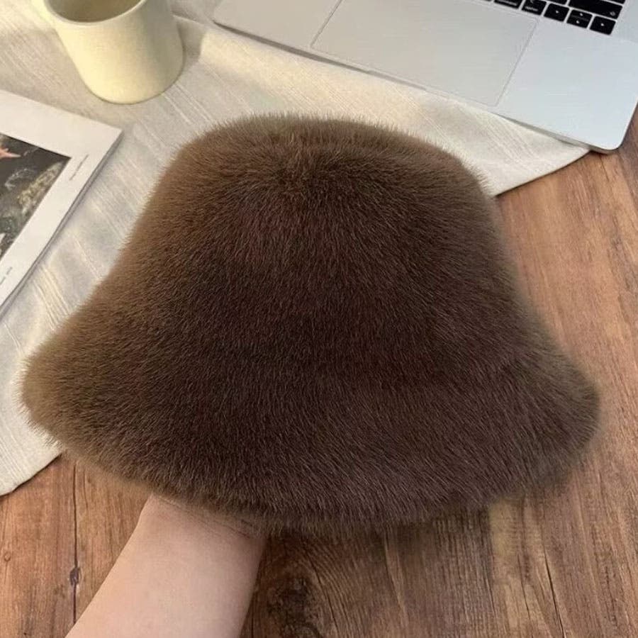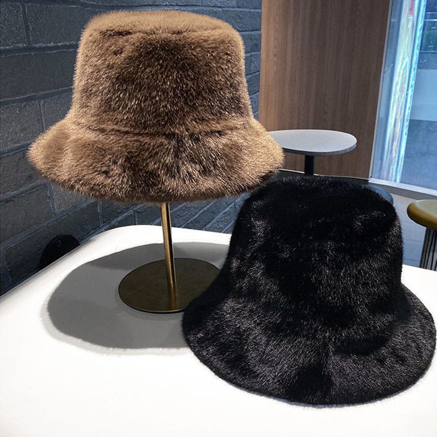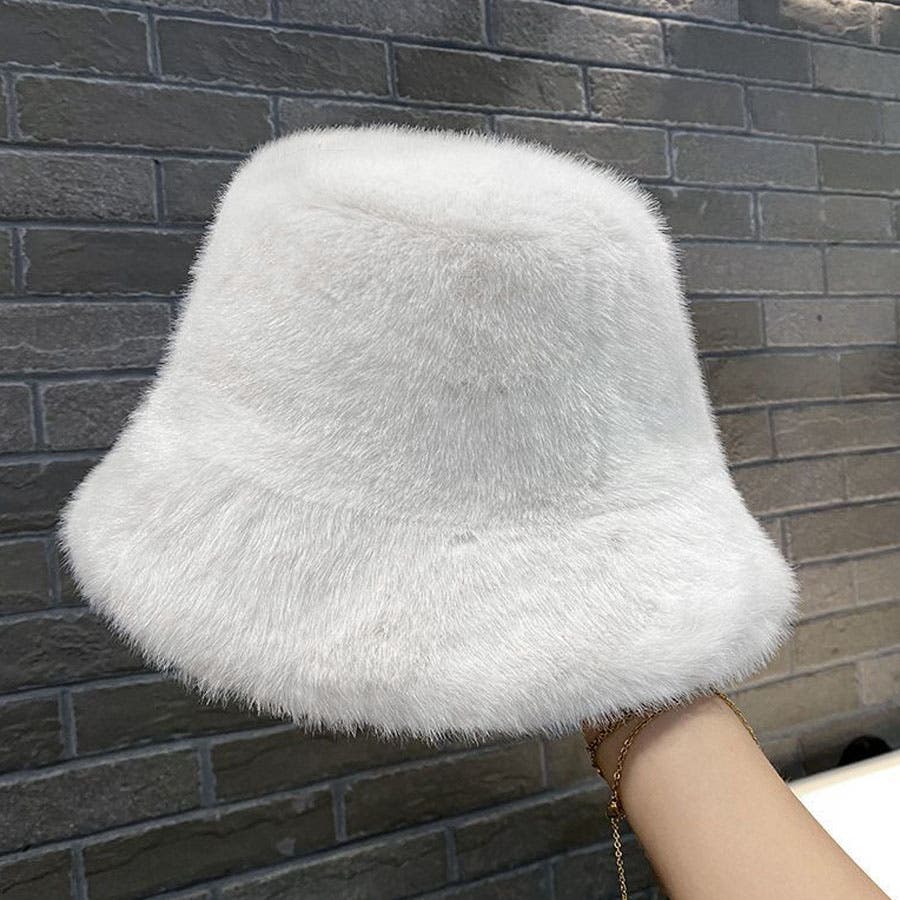ふわふわのファーで被り心地のいいバケットハット。