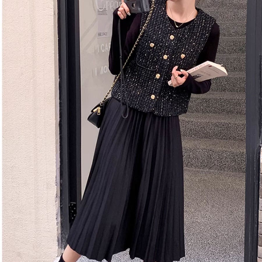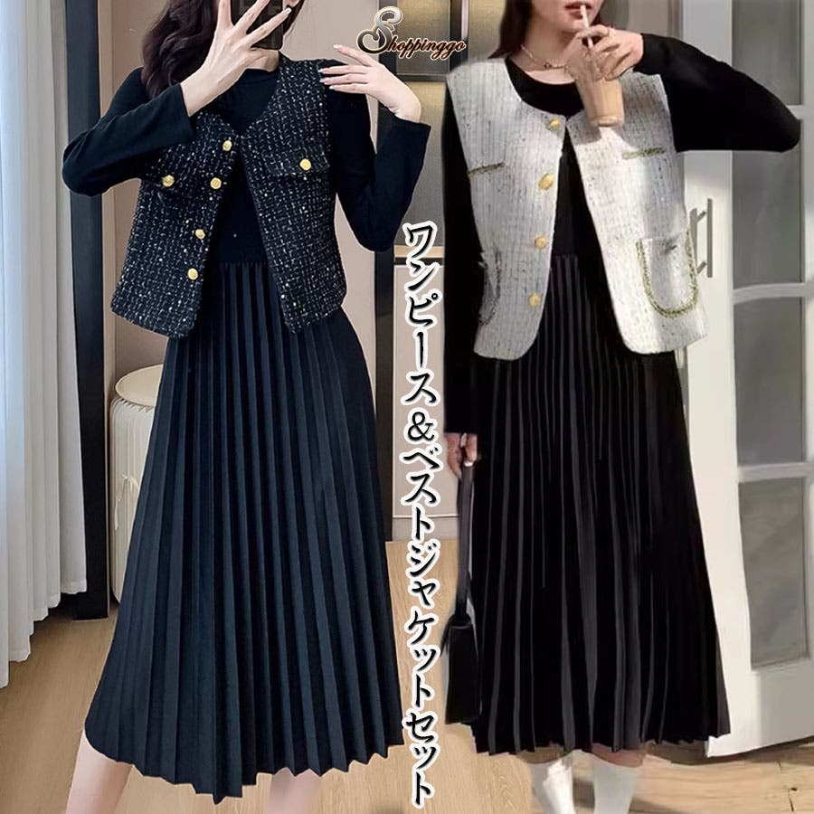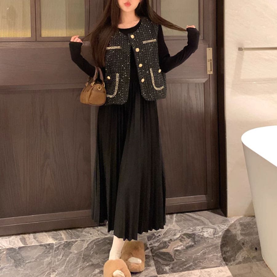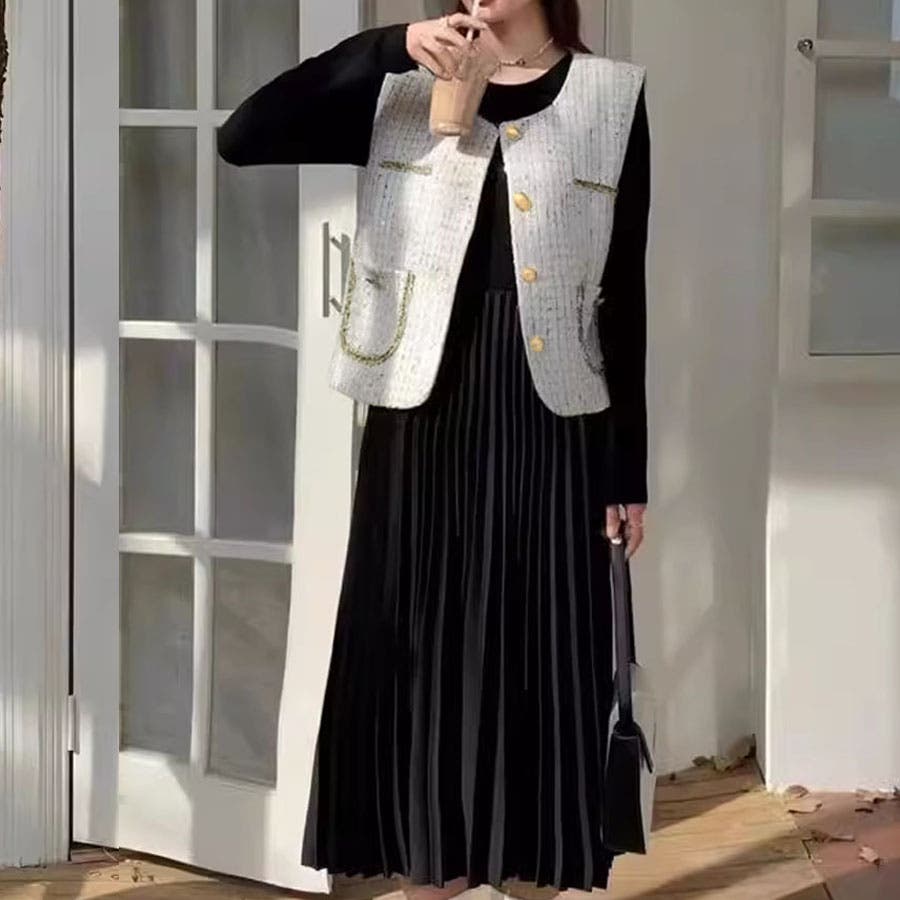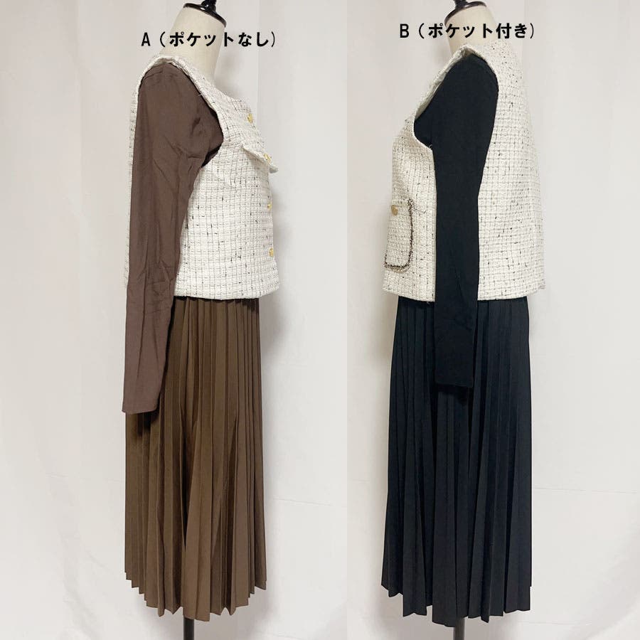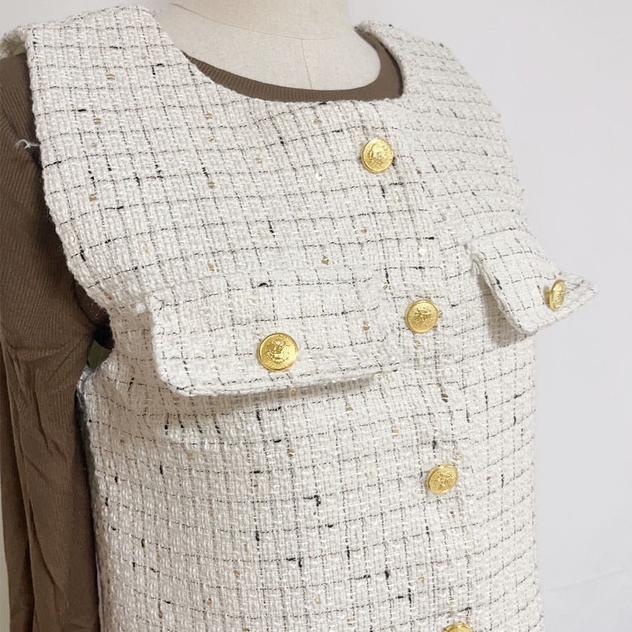 ツイードベストジャケット ワンピース セットアップ