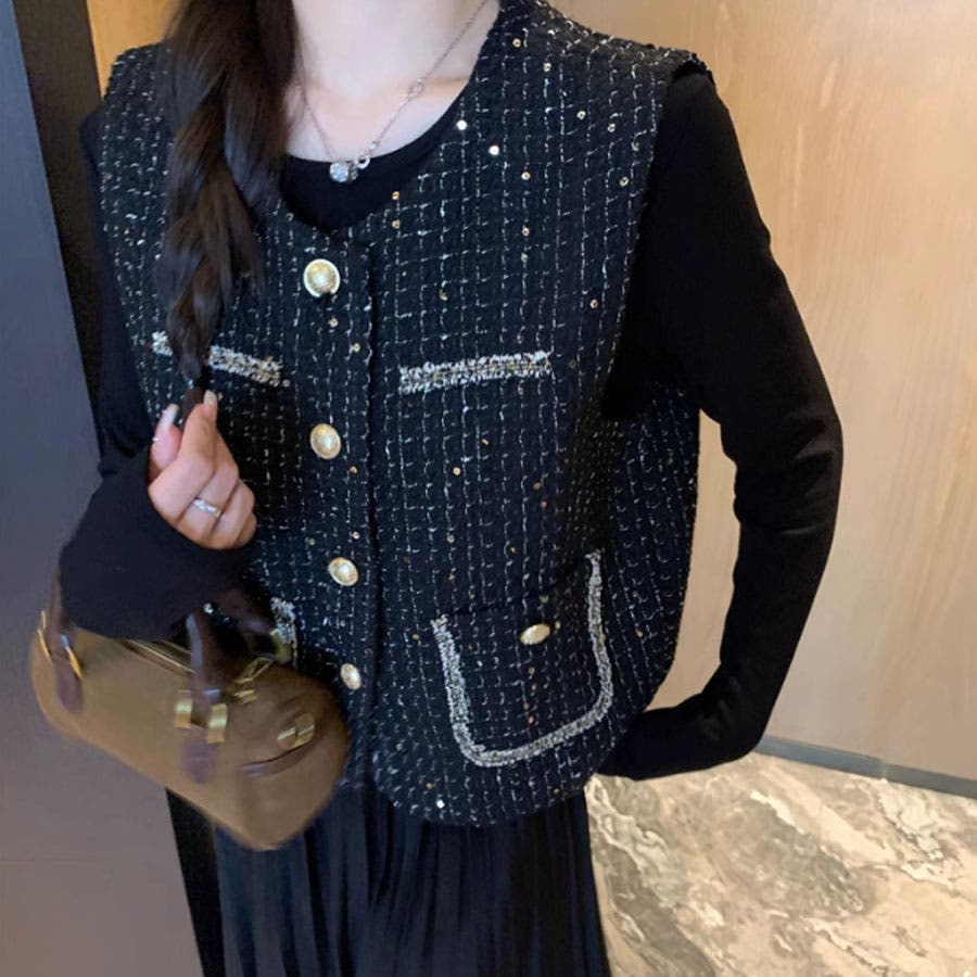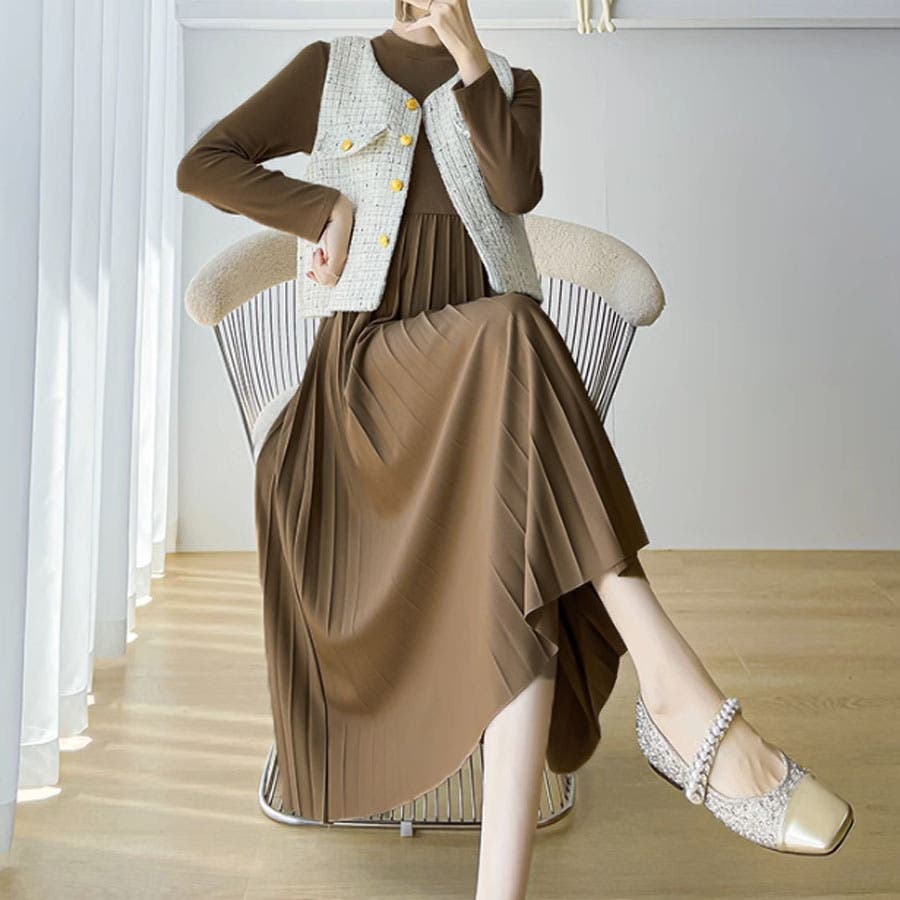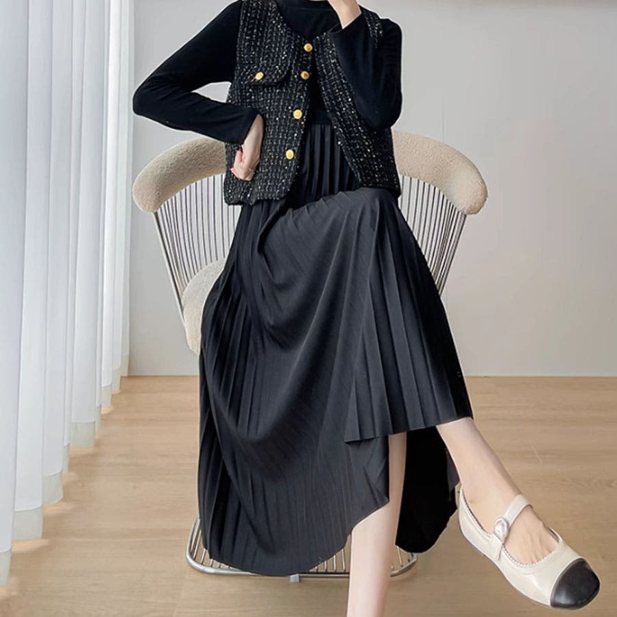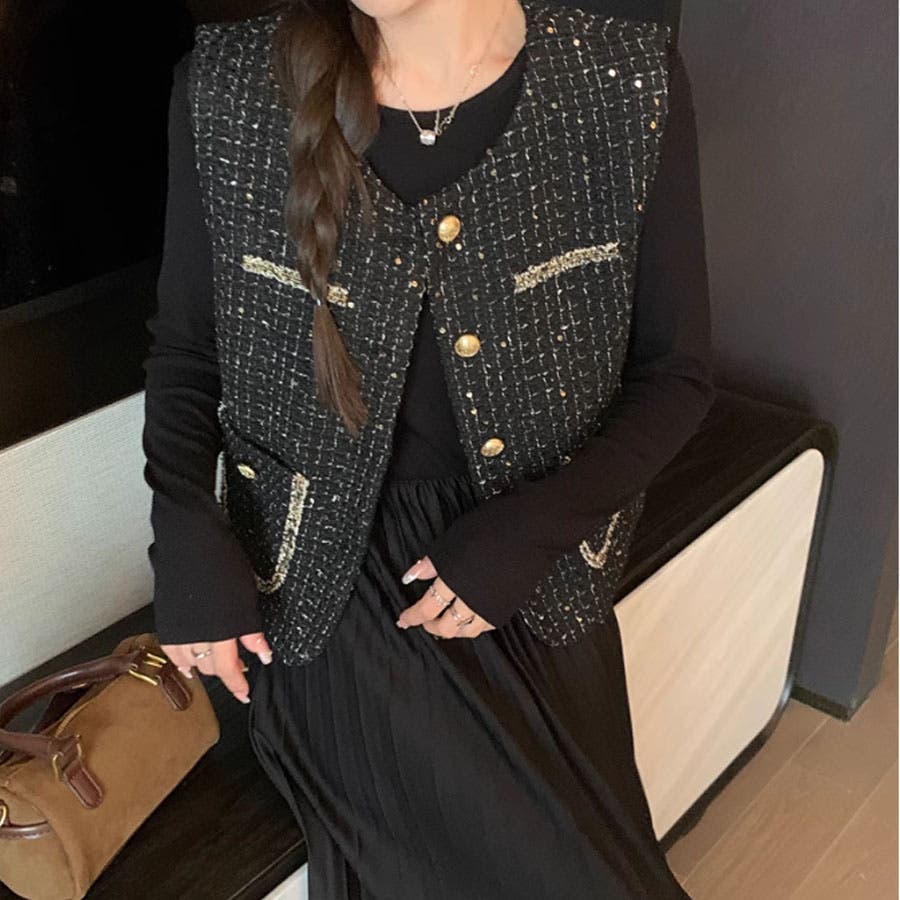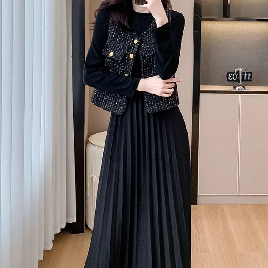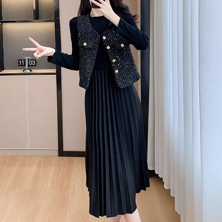 ツイードベストジャケット ワンピース セットアップ