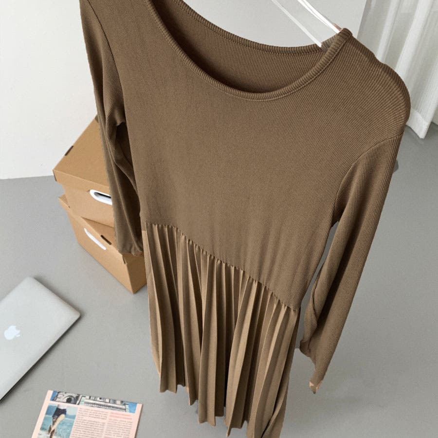 ウエストからプリーツに切り替えた大人可愛いデザイン。