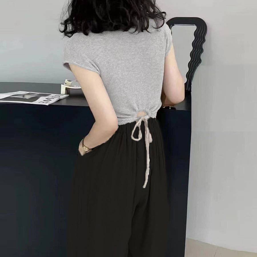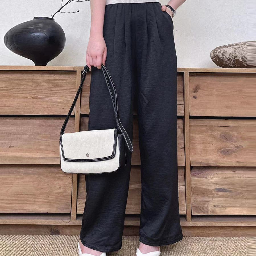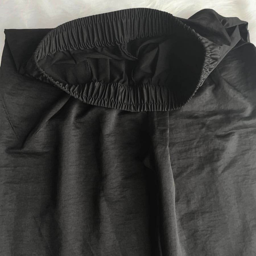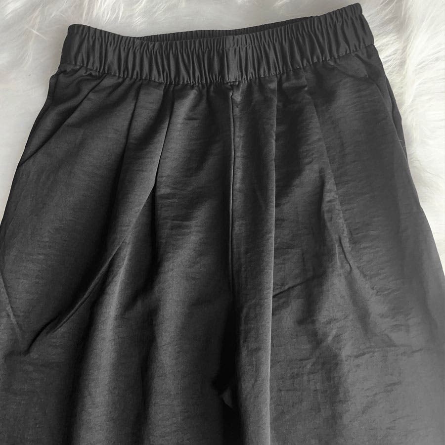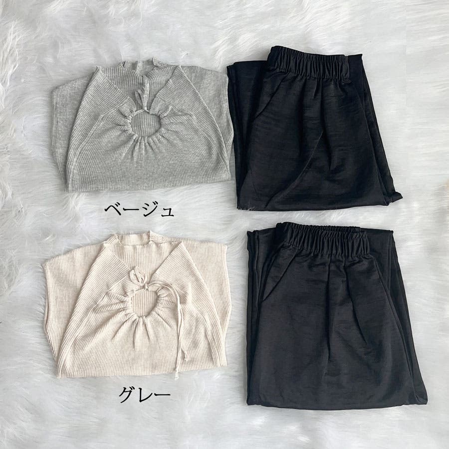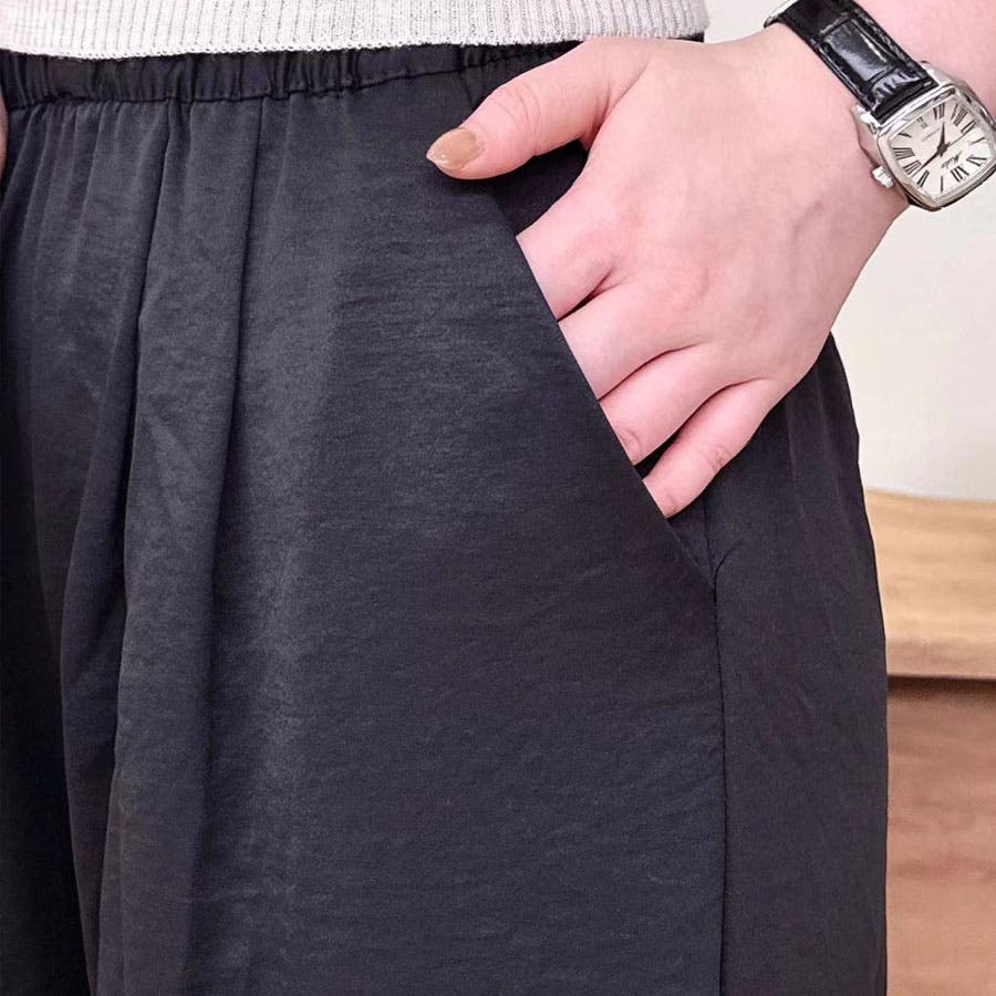 ゆったりとしたワイドパンツはカバー力高く、パンツにはウェストゴム仕様で着脱が楽チン。