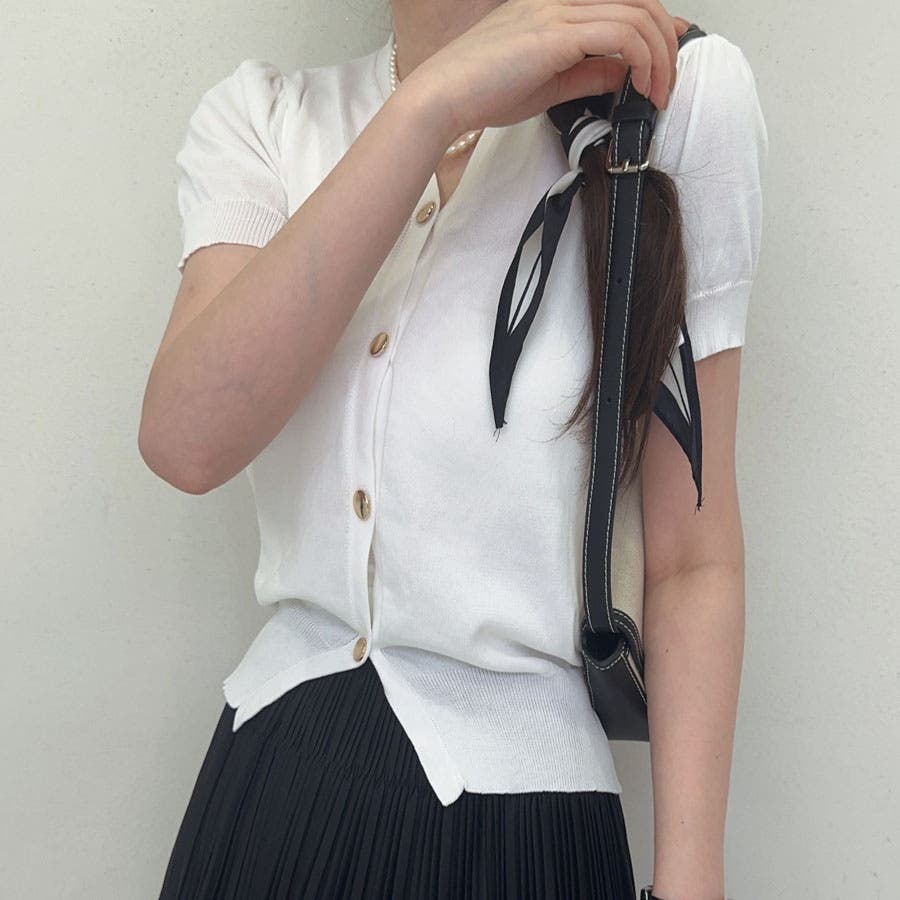 Vネックでエレガントな鎖骨見えを演出する。